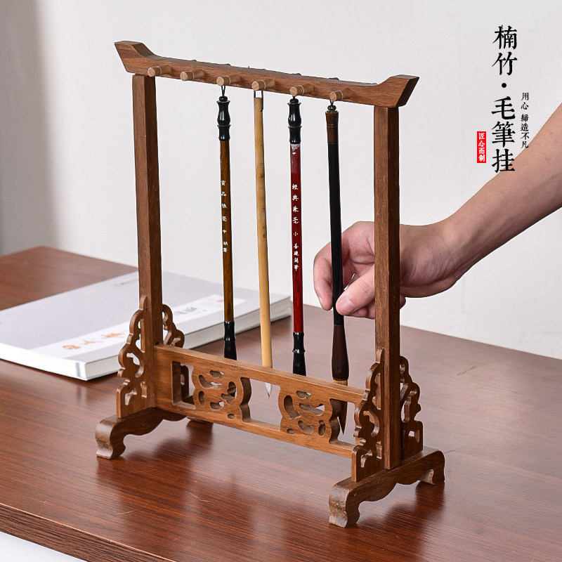 鸡翅木文房四宝毛笔架笔挂实木笔架创意书法毛笔架子毛笔挂新中式