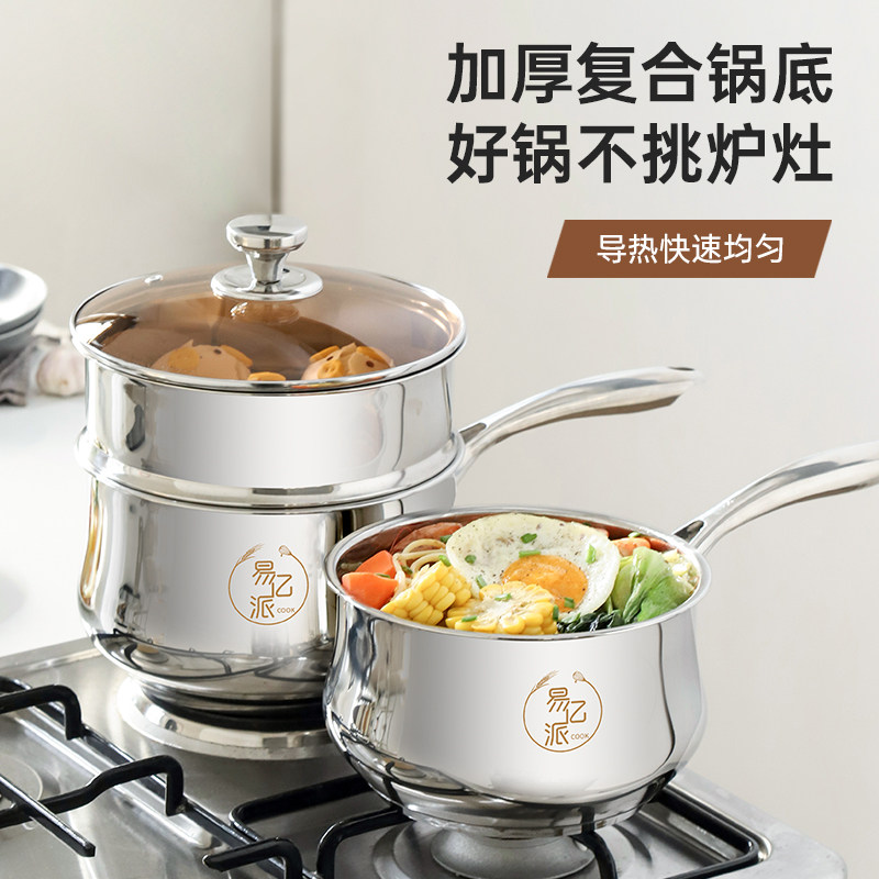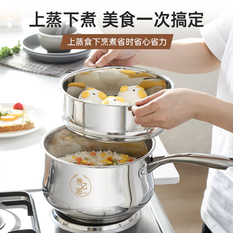 无涂层304不锈钢小奶锅婴儿煎煮一体蒸汤锅宝宝辅食锅泡面锅新款