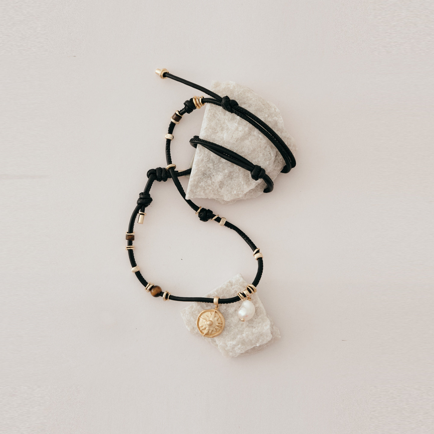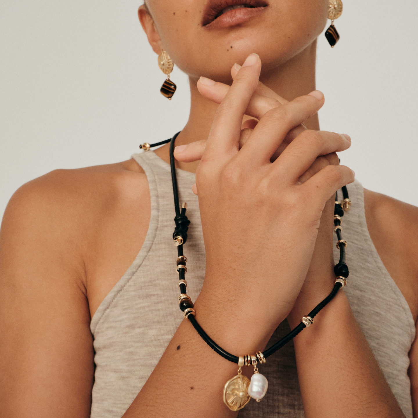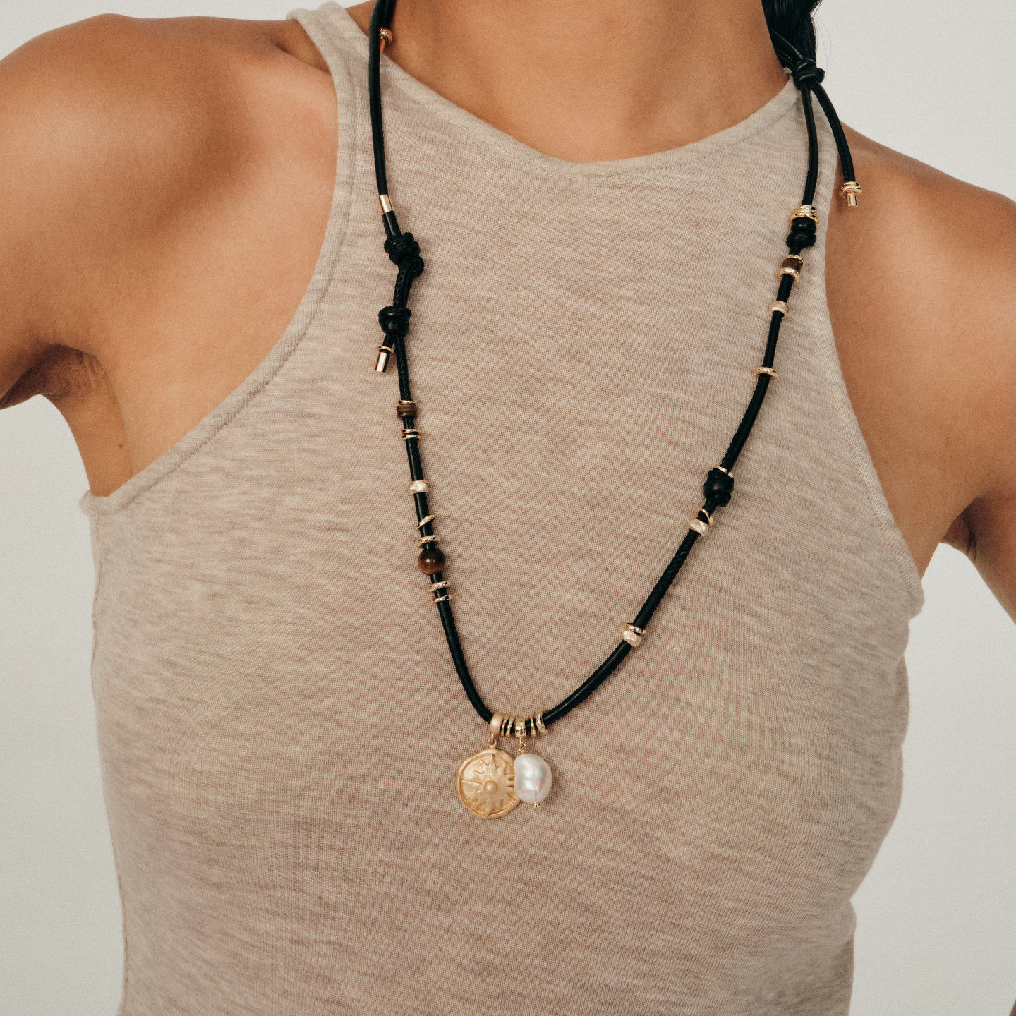 马君妍同款lost in echo秋冬新款皮绳可调节天然珍珠项链毛衣链女
