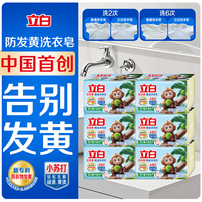 立白天然椰油肥皂家用洗衣皂小苏打净渍祛味防发黄不伤手官方正品