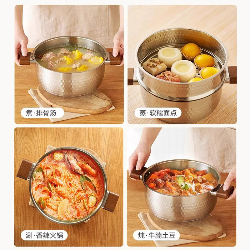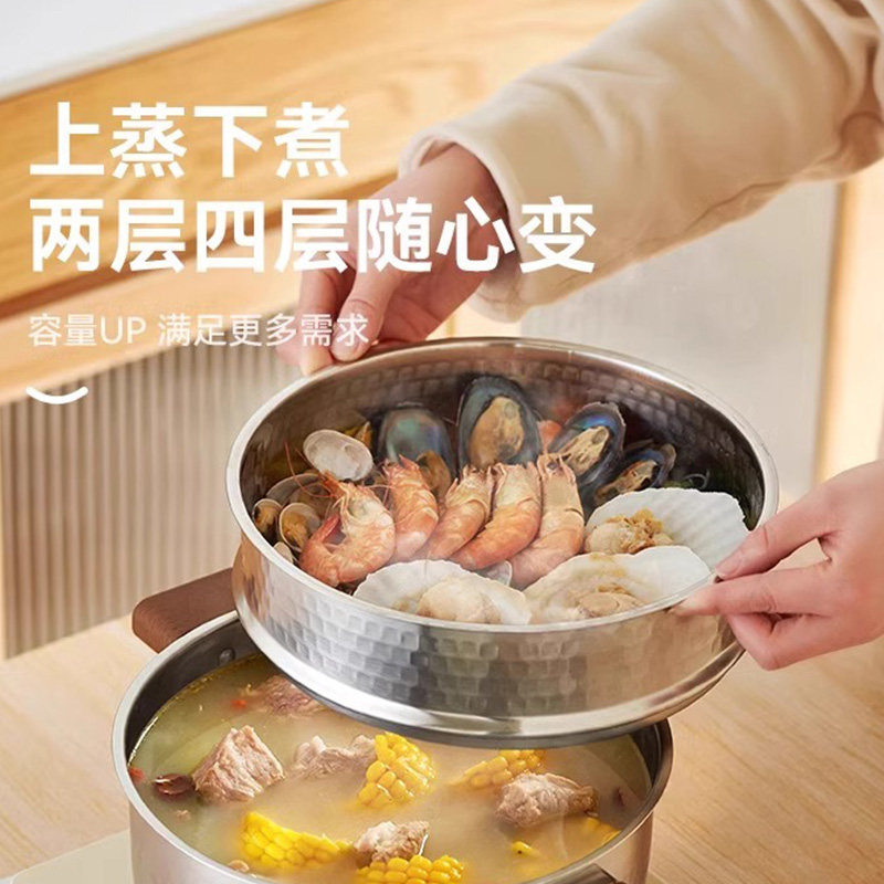 防烫双耳设计 精致锤纹工艺 上蒸下煮