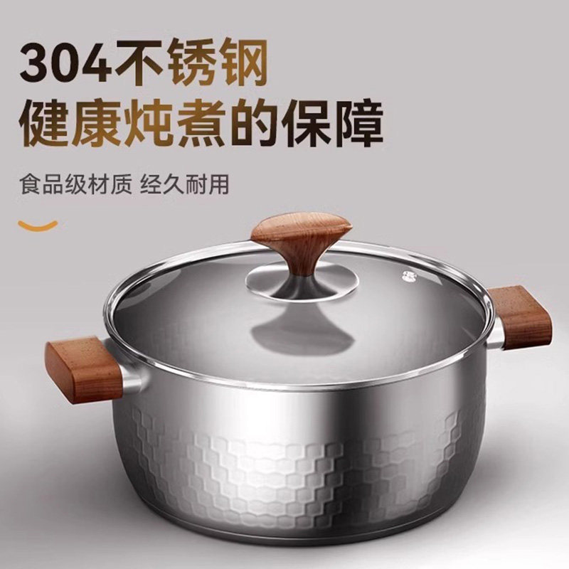 蒸锅日式家用蒸煮锅锅加厚蒸锅家用双耳炖煮锅不锈钢雪平汤锅