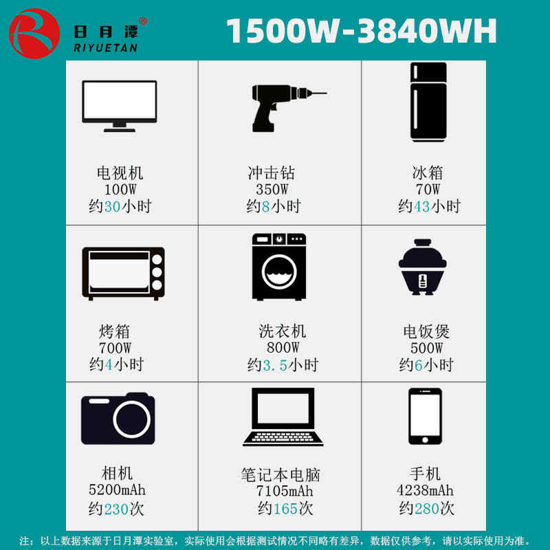 日月潭220v移动电源1500W大功率便携应急太阳能充电宝备用电瓶