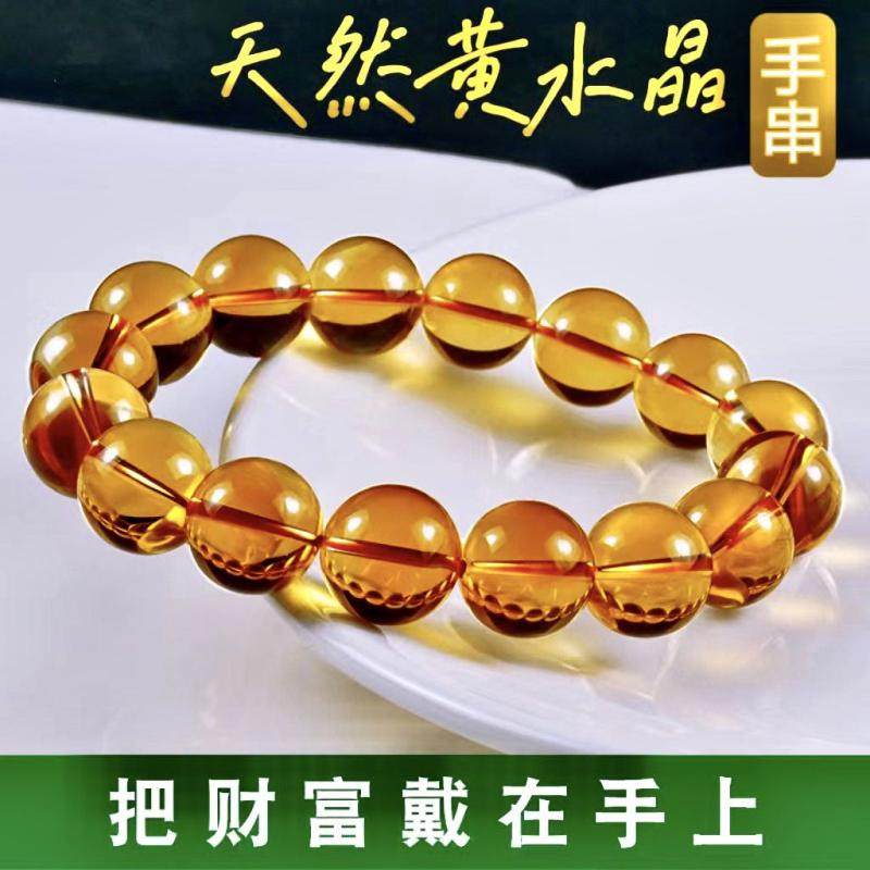 仿黄水晶手链女黄色水晶珠子正品散珠男士手串情侣水晶手饰