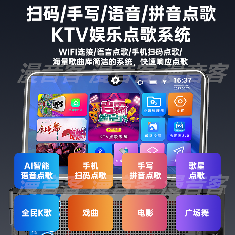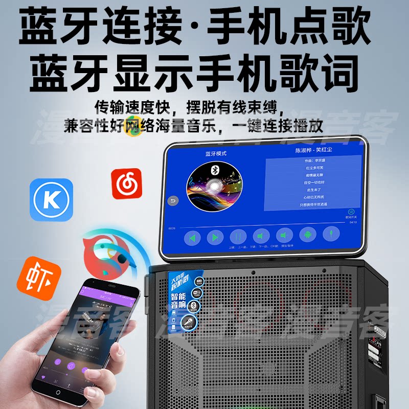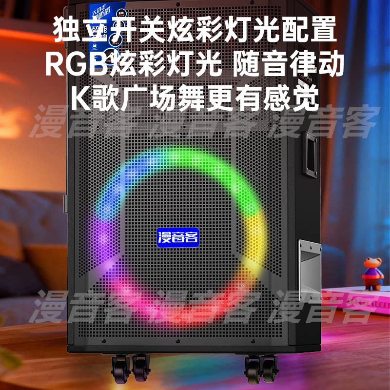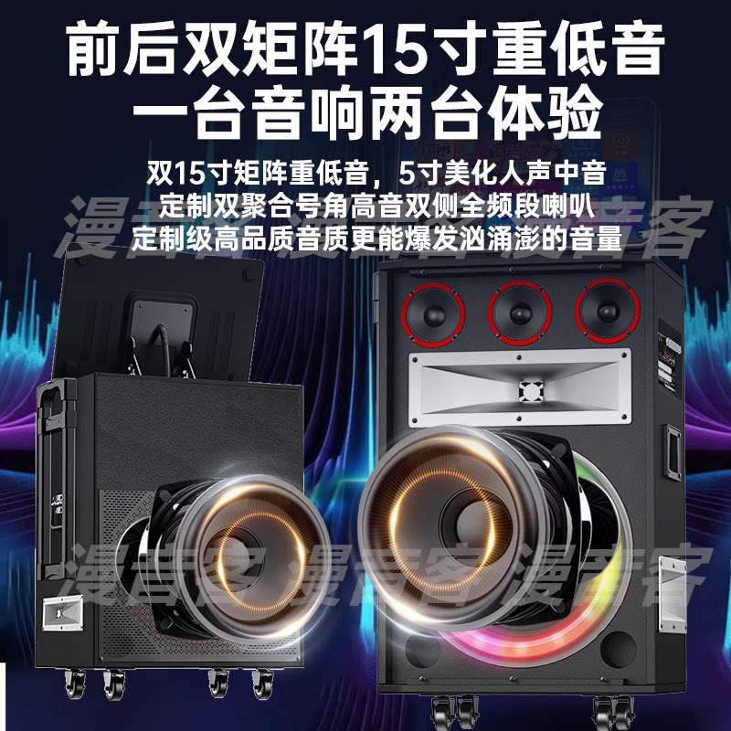 双15寸带彩灯户外k歌音响广场舞卡拉OK家用ktv点歌一体机拉杆音箱