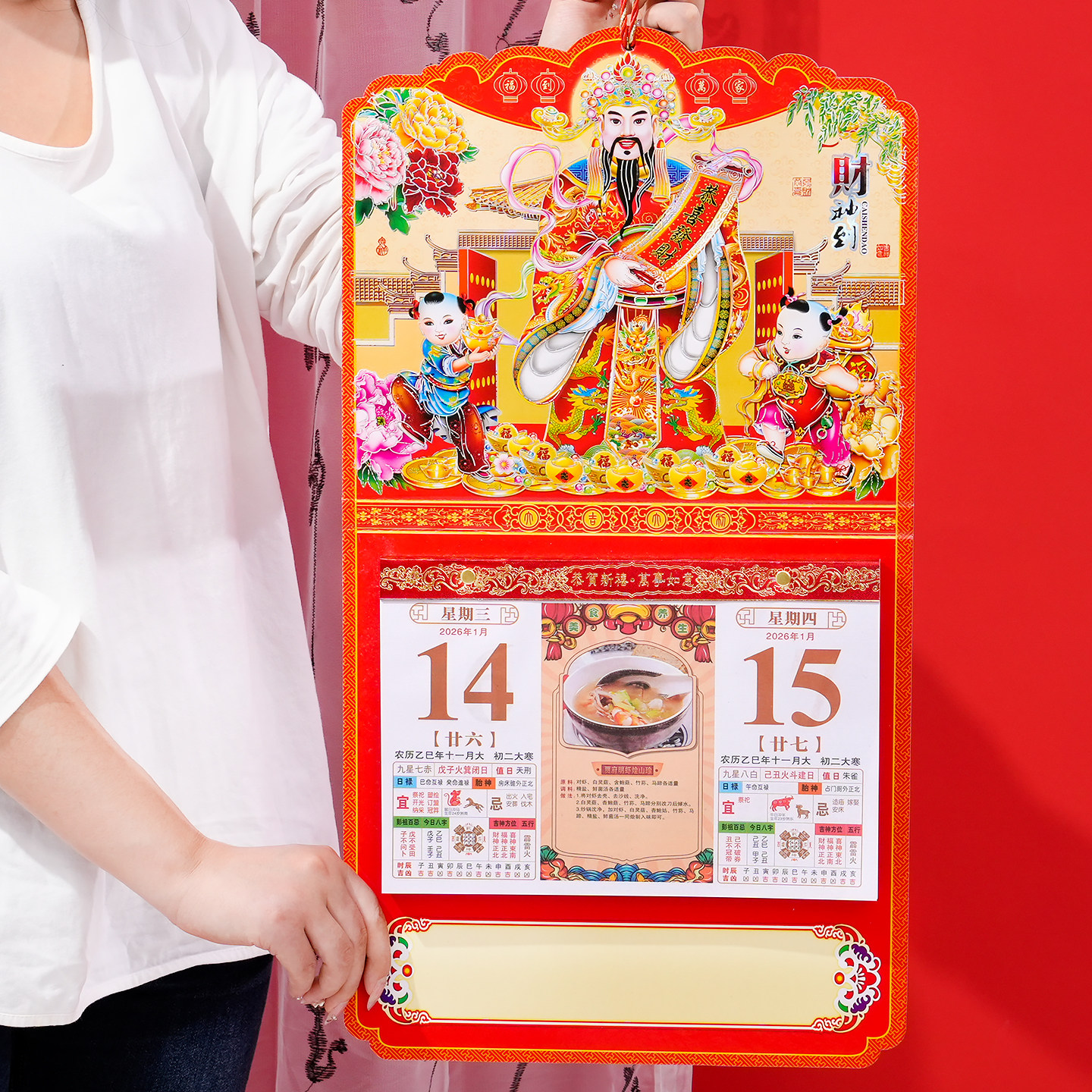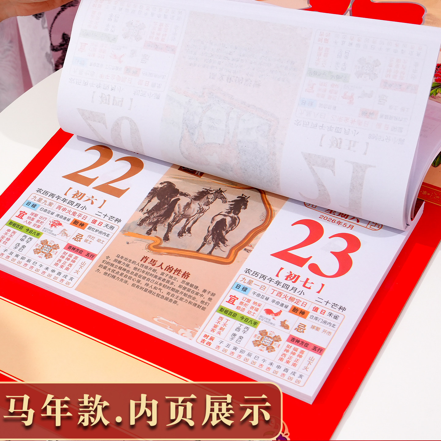 2026年日历老黄历新款福字挂历定制双日历家用挂墙月历历撕历中国风万年历挂式大号手撕马年装饰画老式挂历