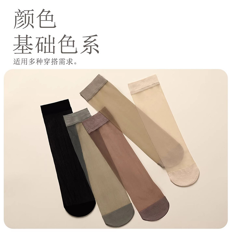 丝袜女短袜夏季薄款黑色肉色防勾丝袜子女士水晶丝耐磨中短筒丝袜
