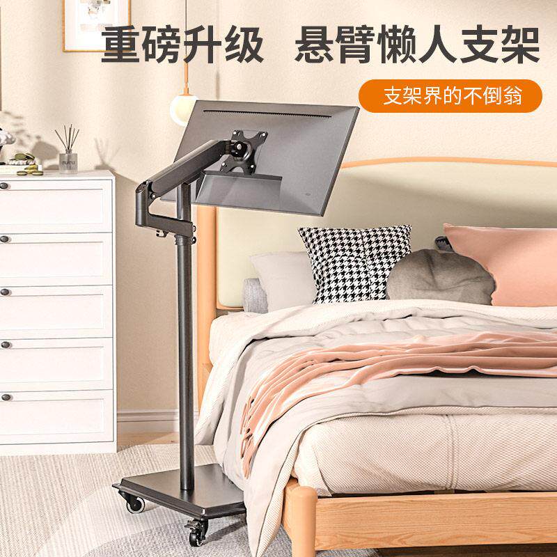 白色显示器落地支架移动推车横竖屏旋转升降健身瑜伽闺蜜机随心屏