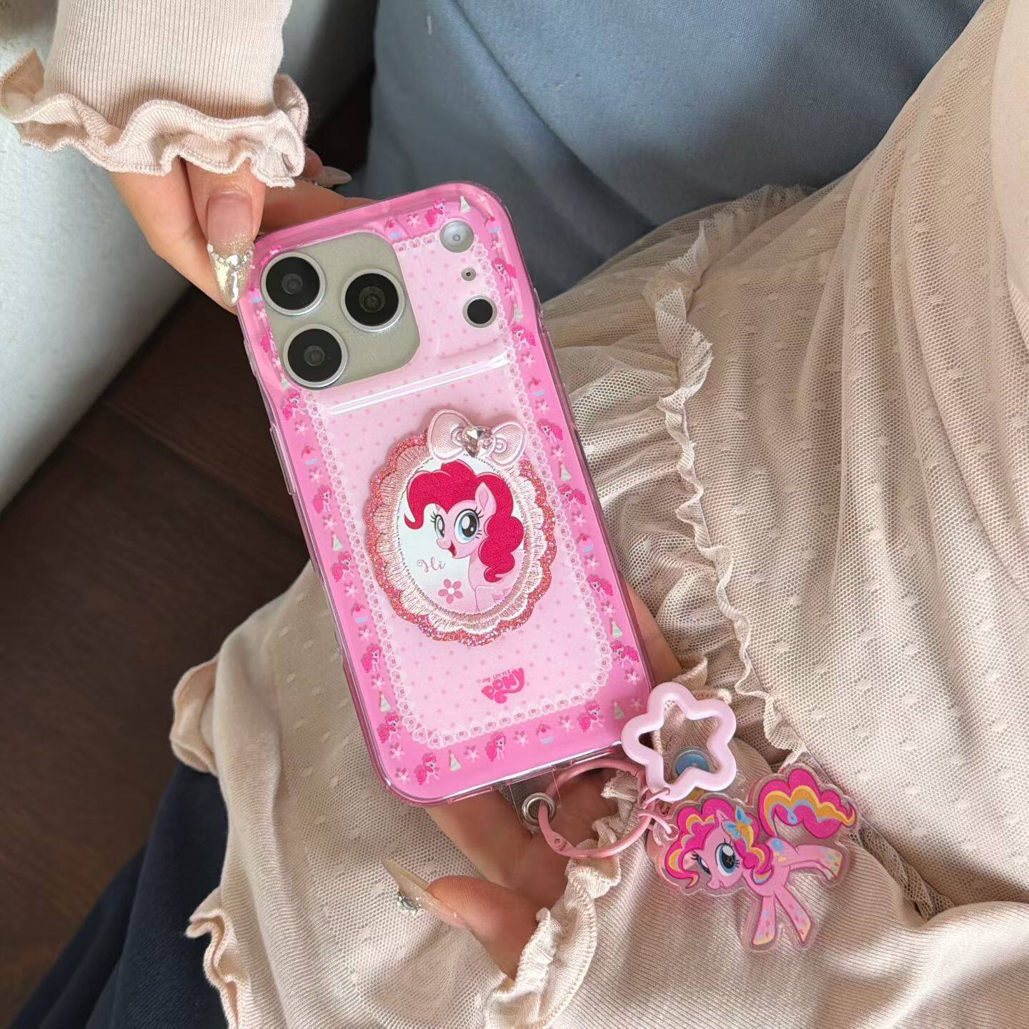粉色围边蕾丝小马宝莉挂件苹果17手机壳新款iphone17promax全包硅胶软壳苹果16ProMax小众女苹果15pro防摔14p