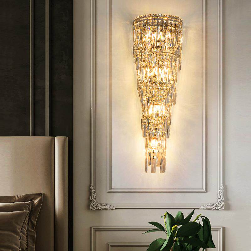 新款轻奢水晶壁灯别墅复式楼客厅背景墙壁灯酒店大堂门厅走廊壁灯
