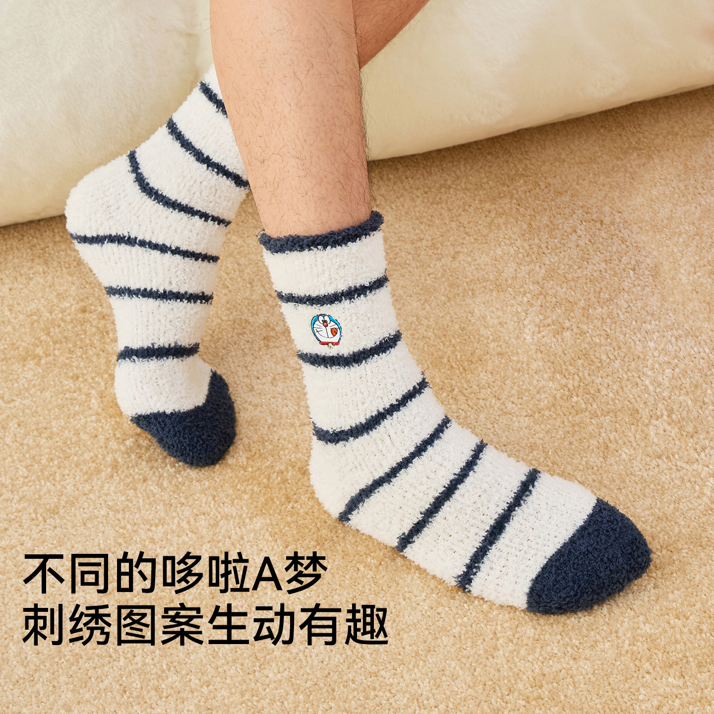 猫人哆啦A梦半边绒男士中筒袜2025新款秋冬加厚柔软亲肤保暖男袜
