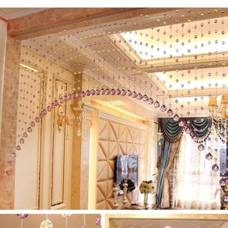 门帘水晶珠帘玄关隔断挂帘卧室客厅过道装饰打孔弧形阳台花晴帘影