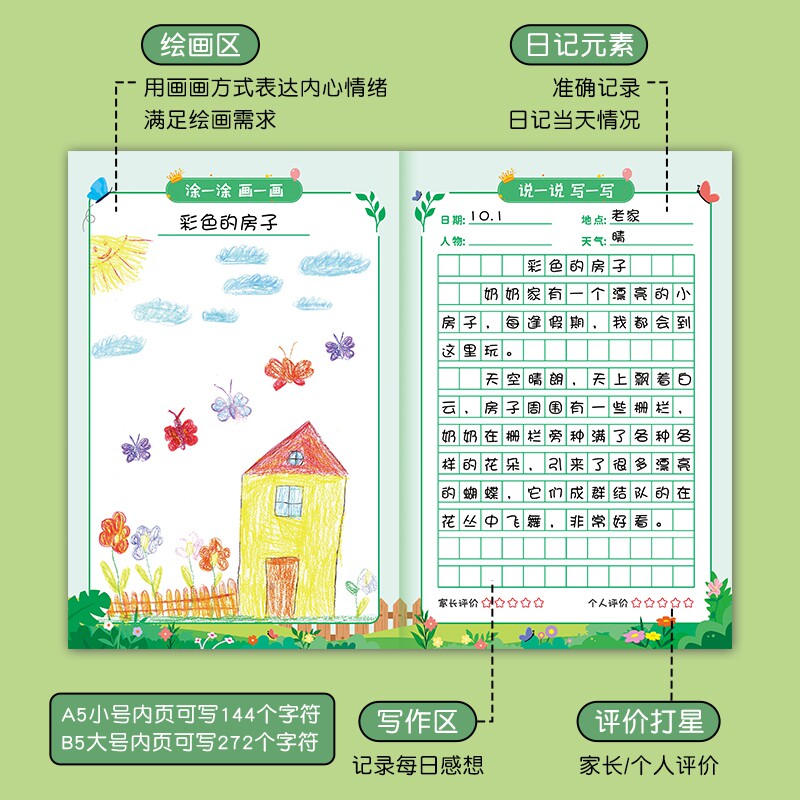 绘画日记本小学生专用拼音田字格方格日记看图写话本一年级二三四年级周记本儿童少儿图画本边画画边写作文本