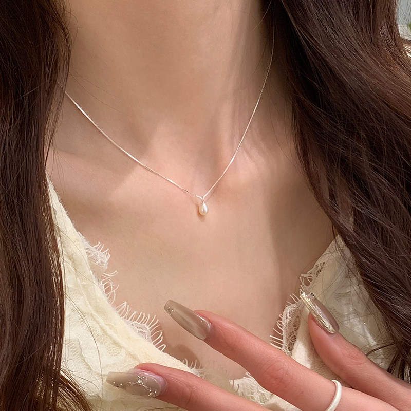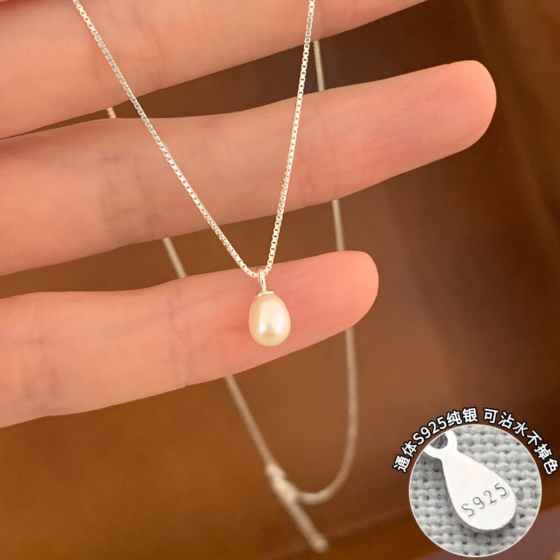 为晚纯银天然珍珠项链吊坠小众闺蜜礼物锁骨链颈链轻奢风气质银饰