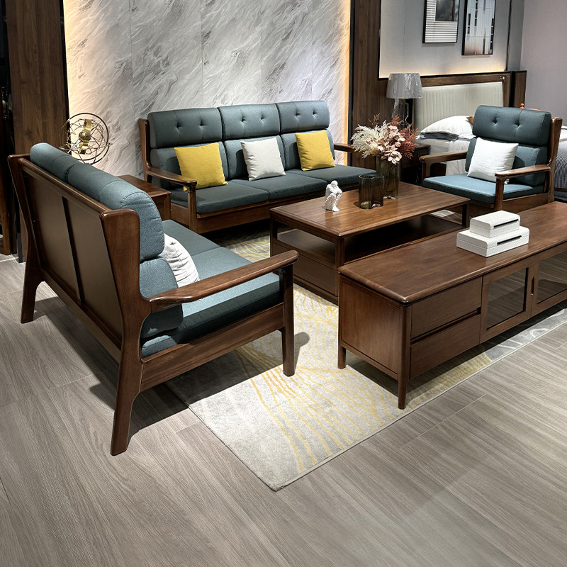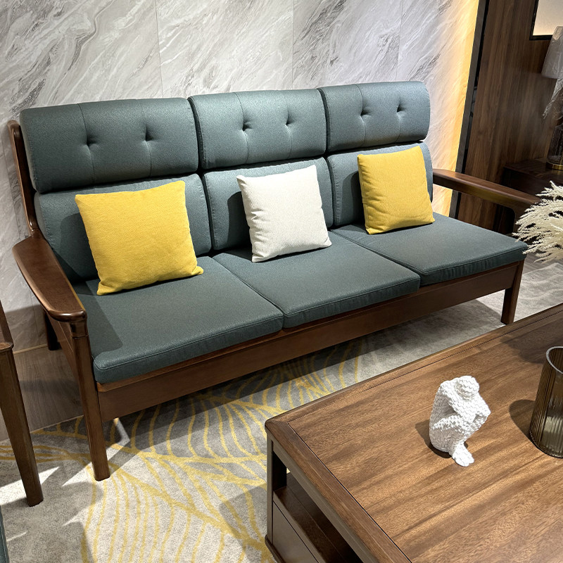 简约现代全实木直排沙发客厅家用小户型胡桃木冬夏两用单两三人位