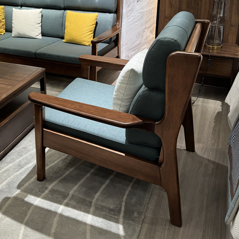 实木沙发组合新中式家用客厅小户型直排三人位简易出租房单人沙发