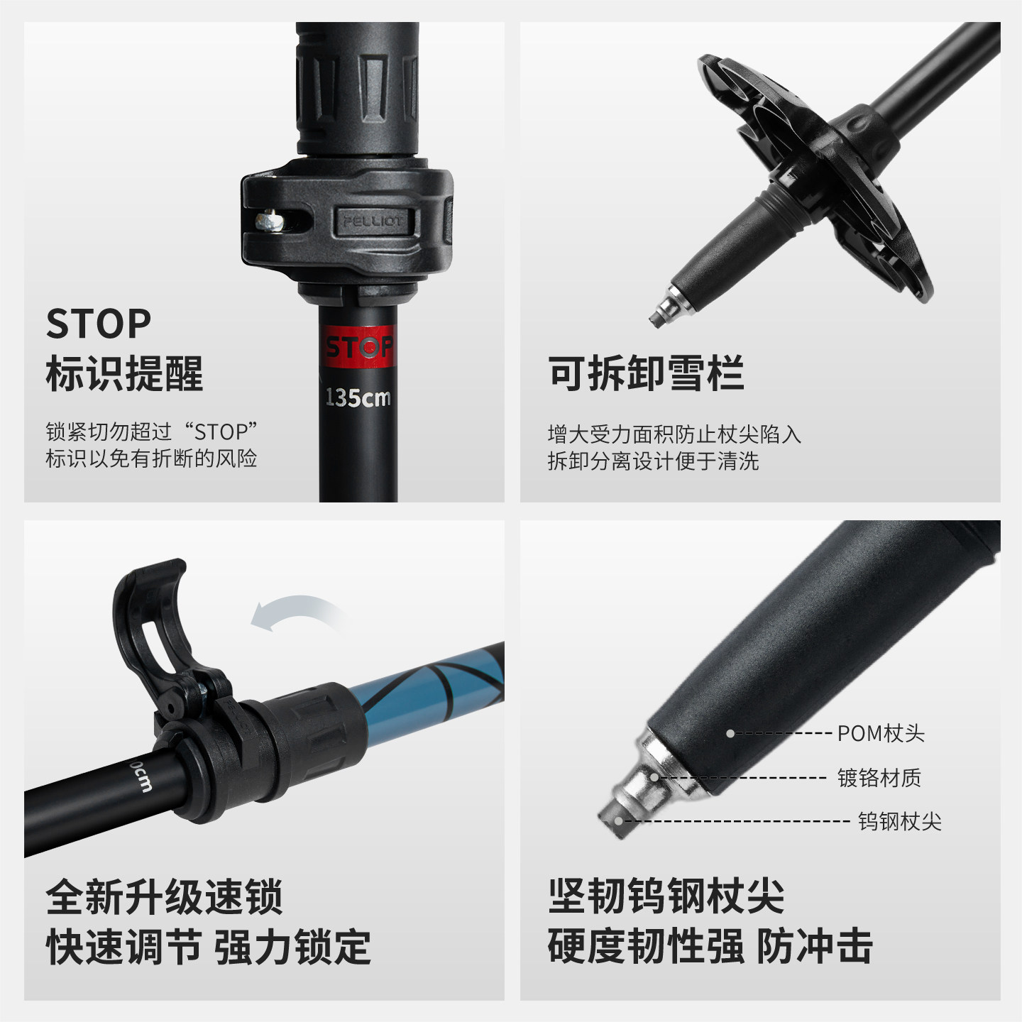 伯希和户外登山杖铝合金拐棍伸缩手杖爬山徒步专业装备防滑拐杖