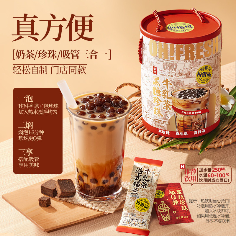 每鲜说黑糖珍珠牛乳茶奶茶粉速溶小包装冲泡饮品免煮珍珠袋装桶装