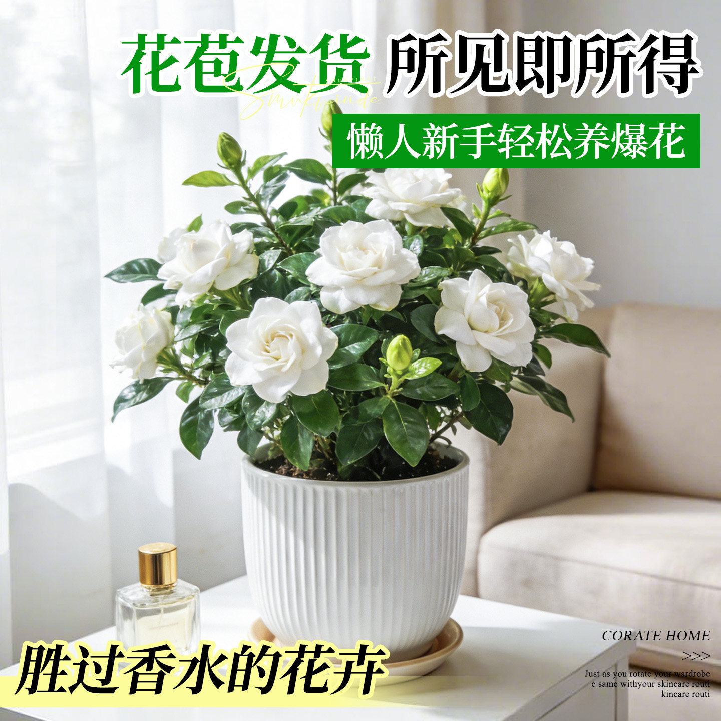 栀子花盆栽客厅绿植物四季树苗开花卉带花苞浓香型大叶独杆枝枝花