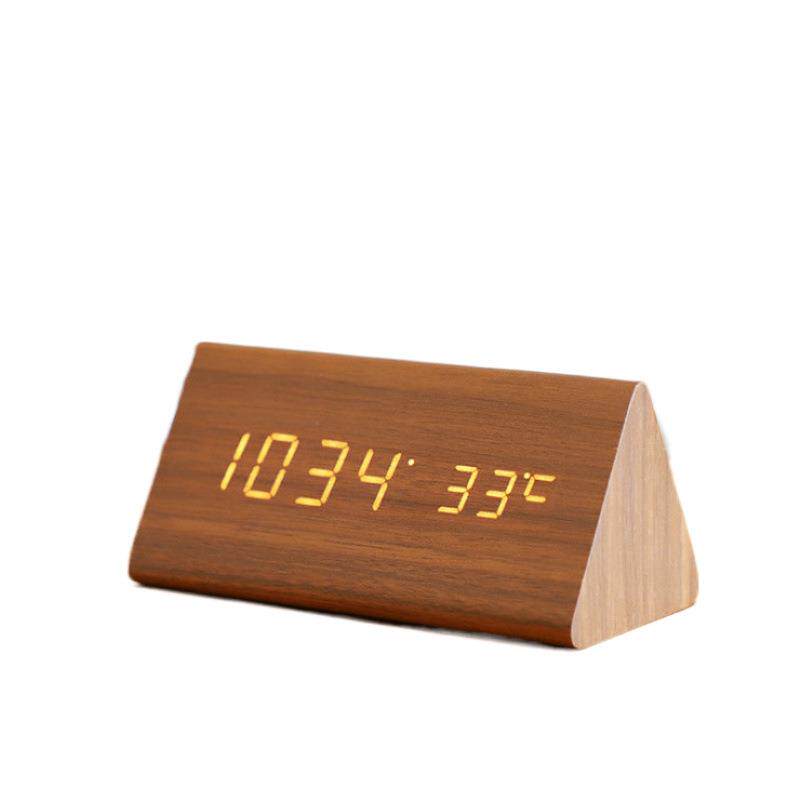 北欧木质木纹闹钟时钟电子钟静音夜光创意简约学生多功能复古台钟