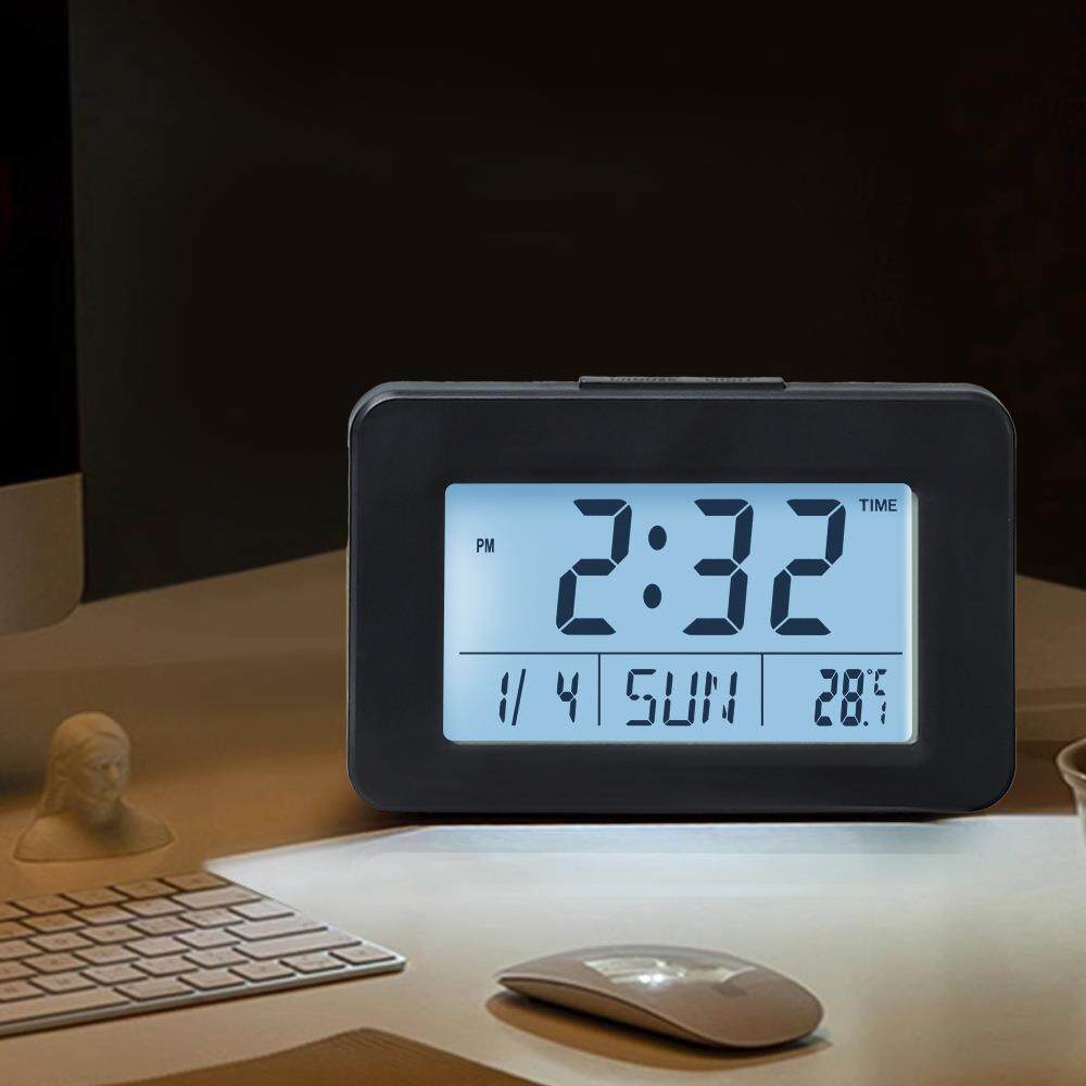 新品大屏LCD带背光电子时钟万年历桌面静音台钟客厅卧室挂钟闹钟