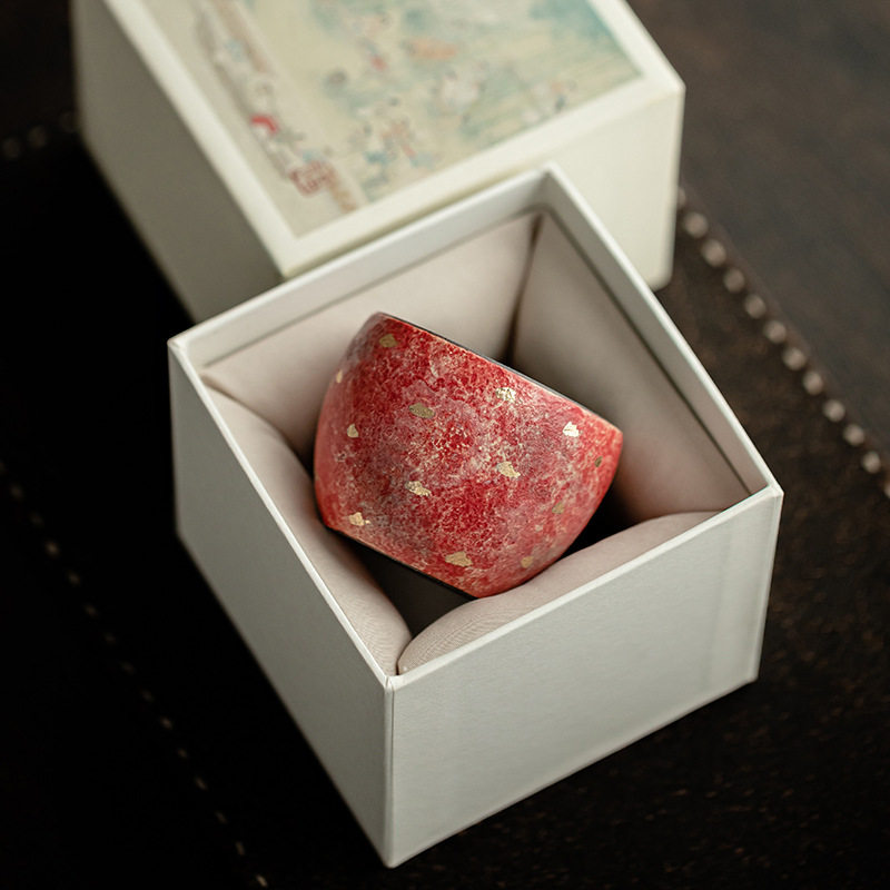 岩矿彩陶茶杯陶瓷主人杯品茗杯复古功夫茶具手工单杯礼品礼盒装