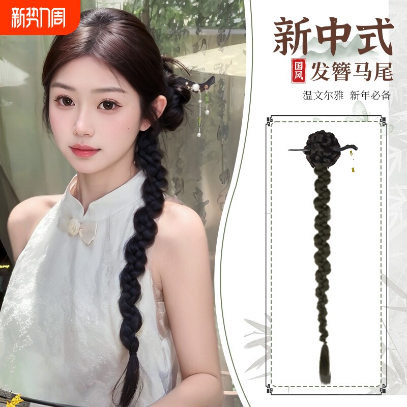 发簪扭扭辫国风假发一体式女新中式马尾抓夹仿真编发侧马尾假发辫