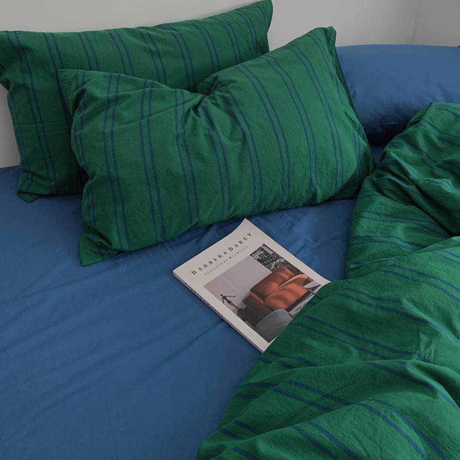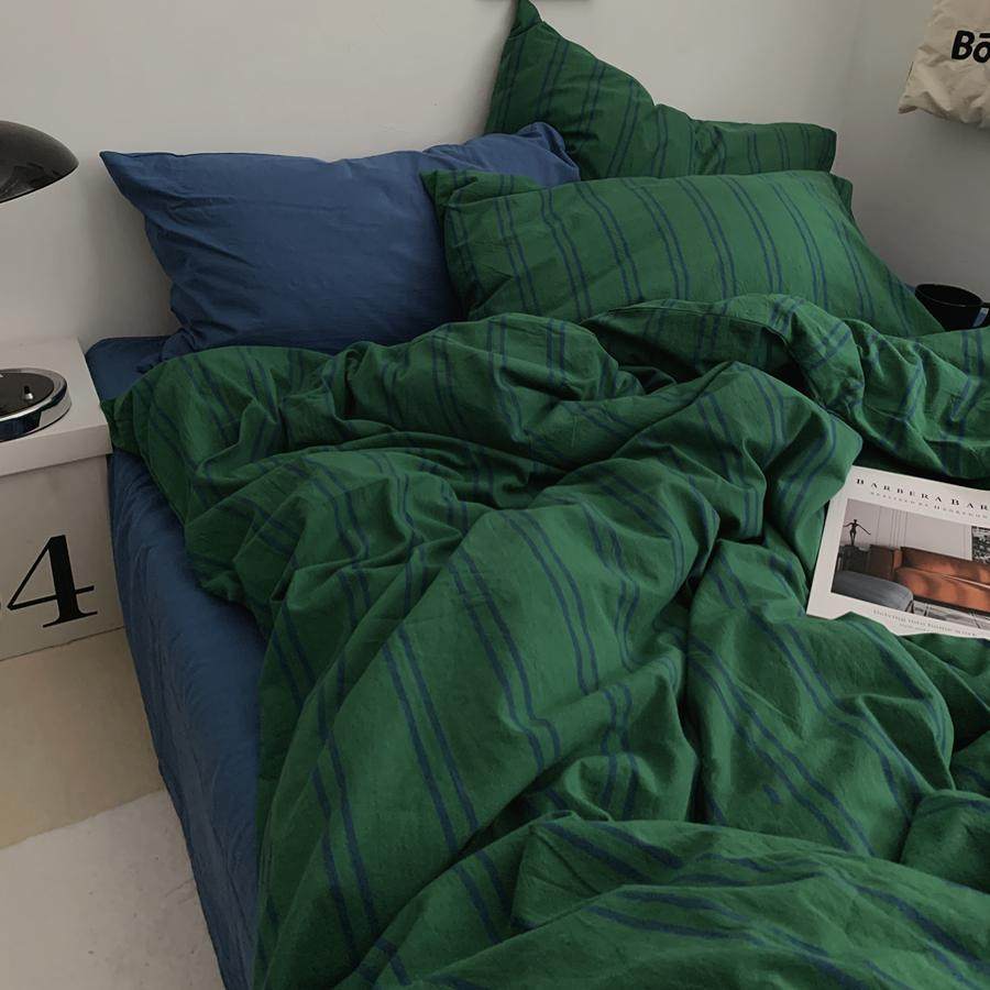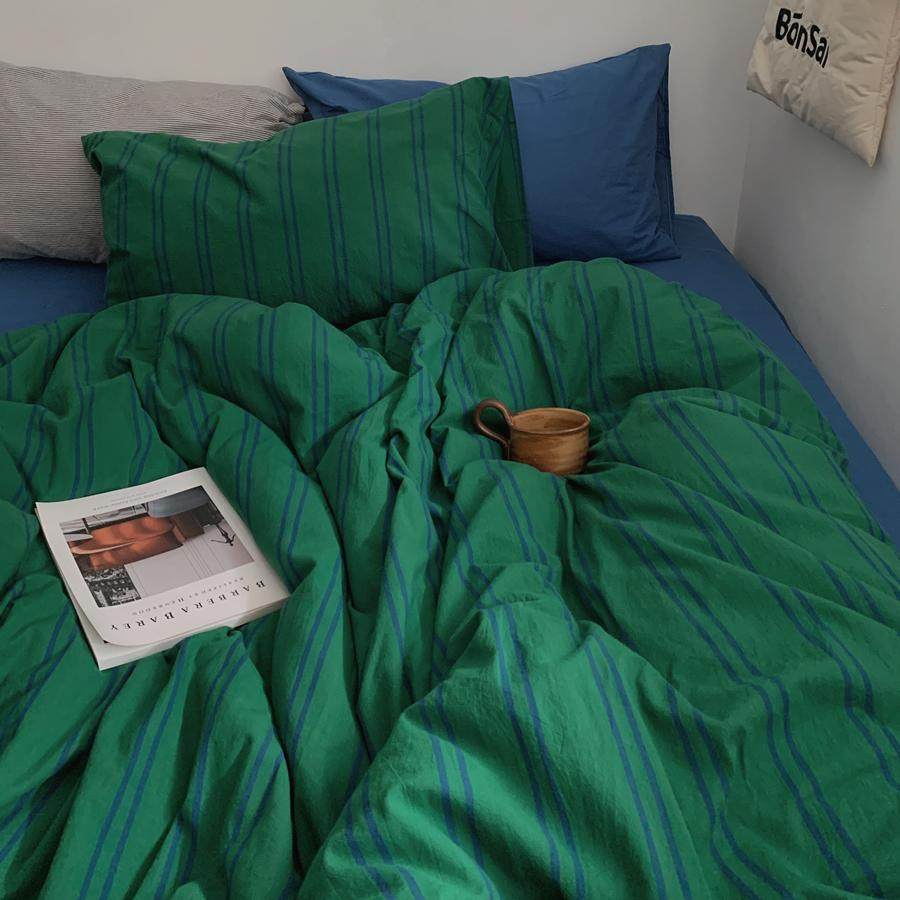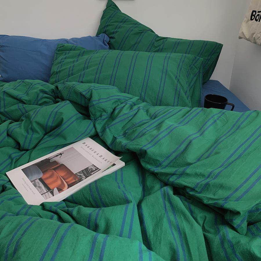 绿色条纹纯色床单水洗棉纯棉四件套全棉被套床单1.8m被罩床品