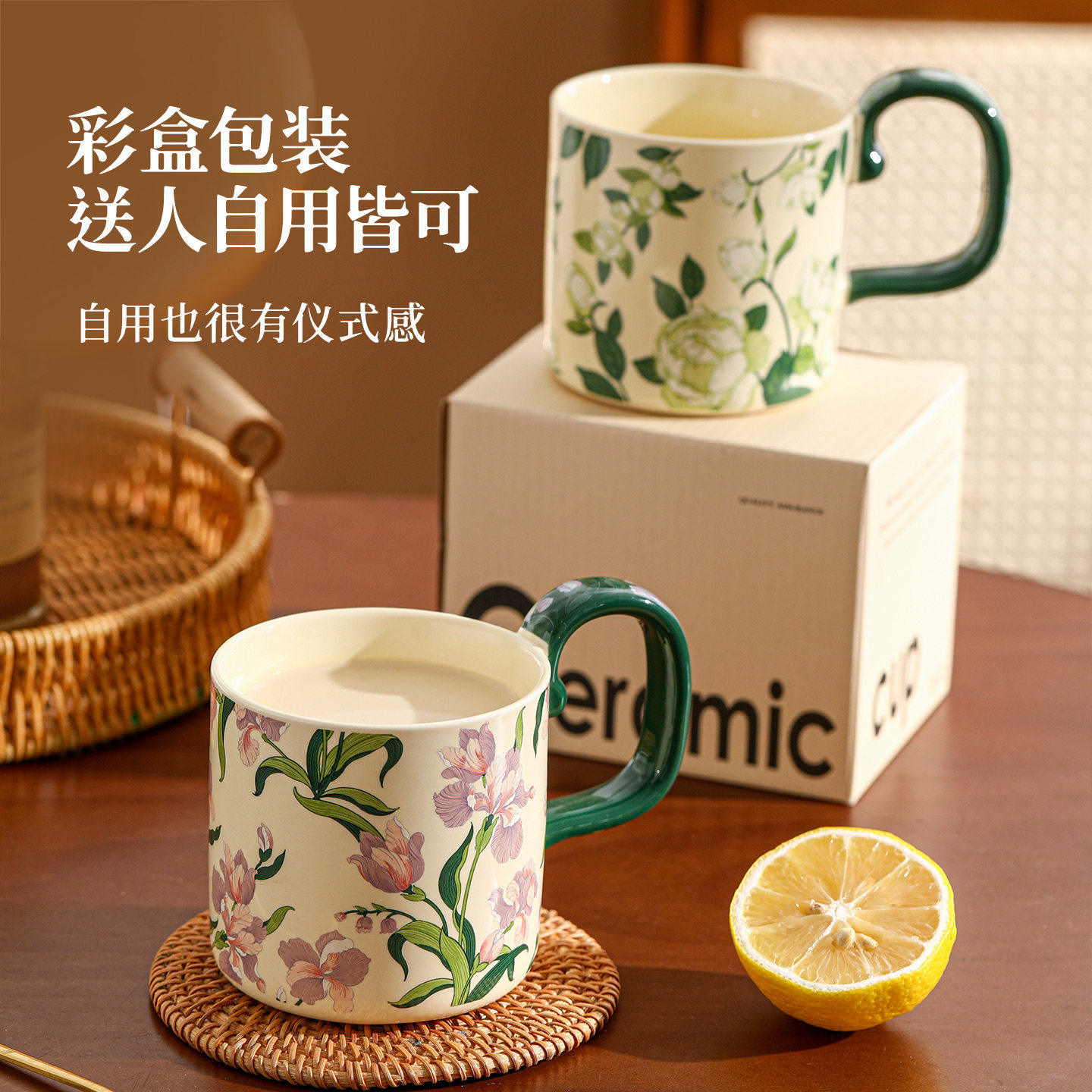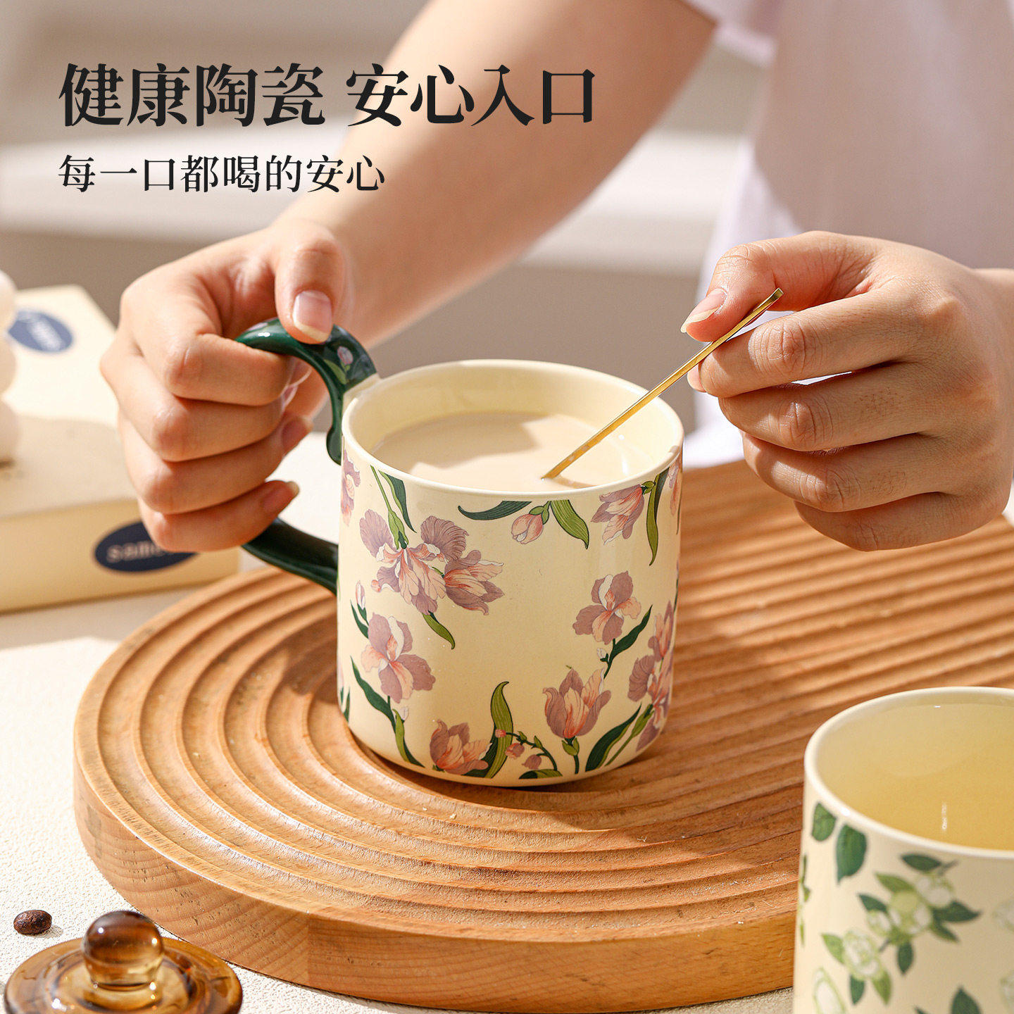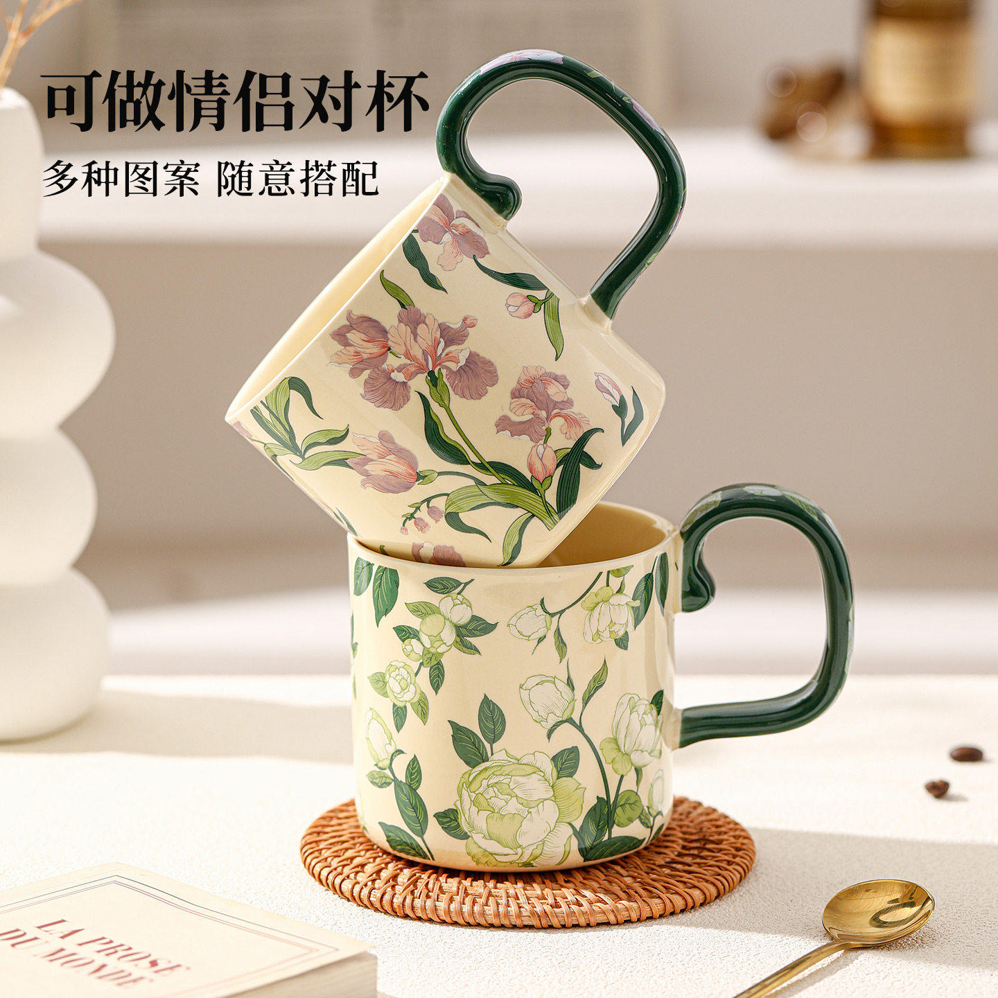 鸢尾花陶瓷马克杯女士高颜值家用喝水杯办公室早餐杯牛奶咖啡杯子