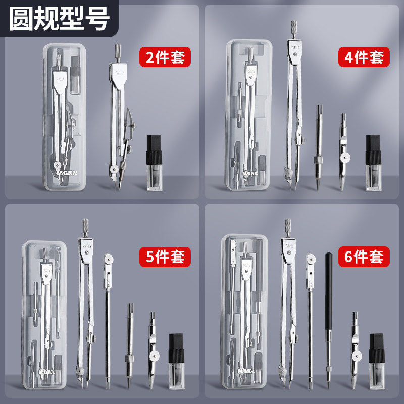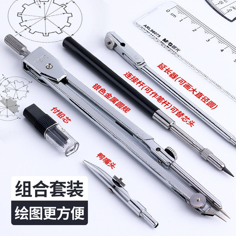 晨光金属圆规小学生专用初中生高考推荐套装学生考试工程技术绘图设计工具金属质感制图仪器2.0铅芯圆规套装