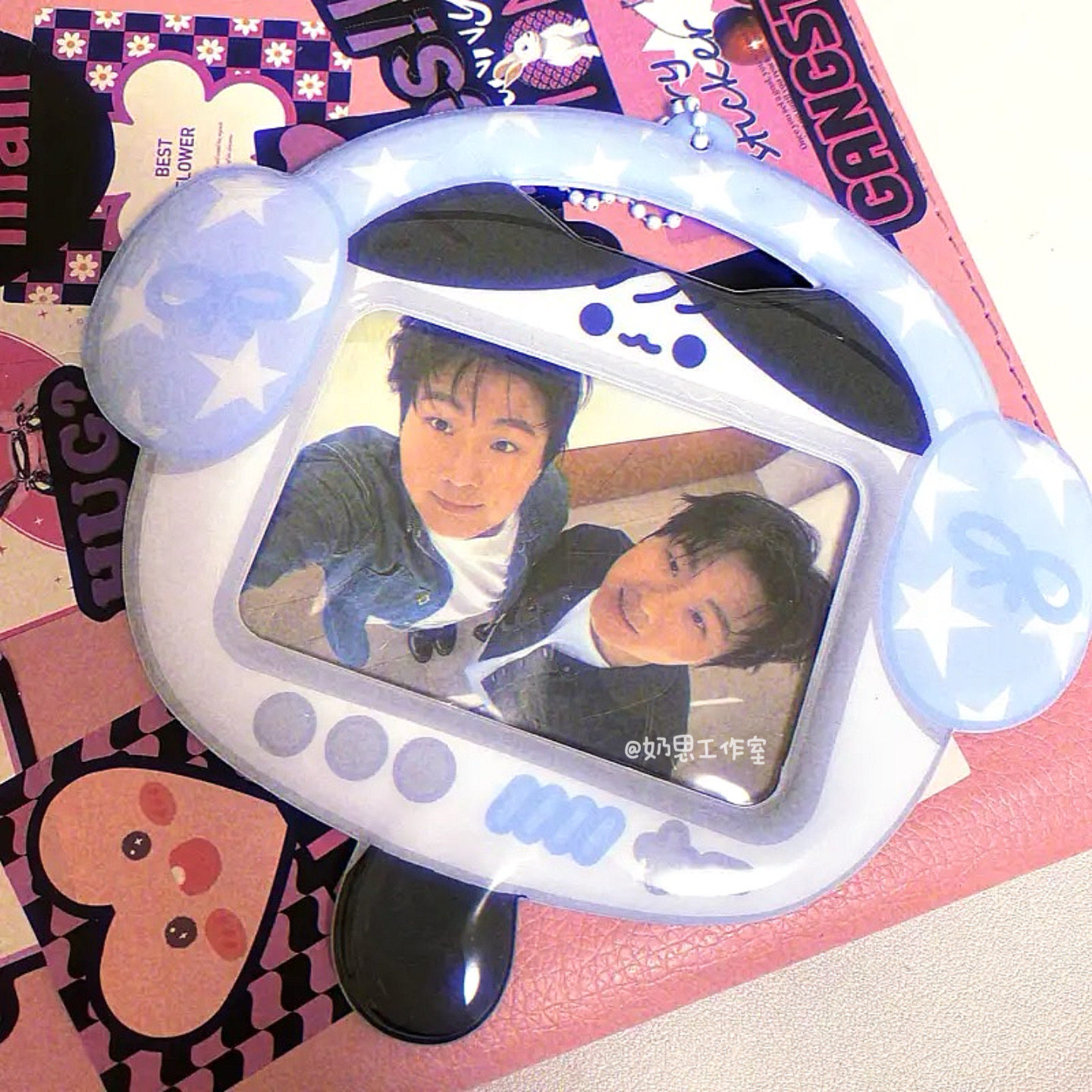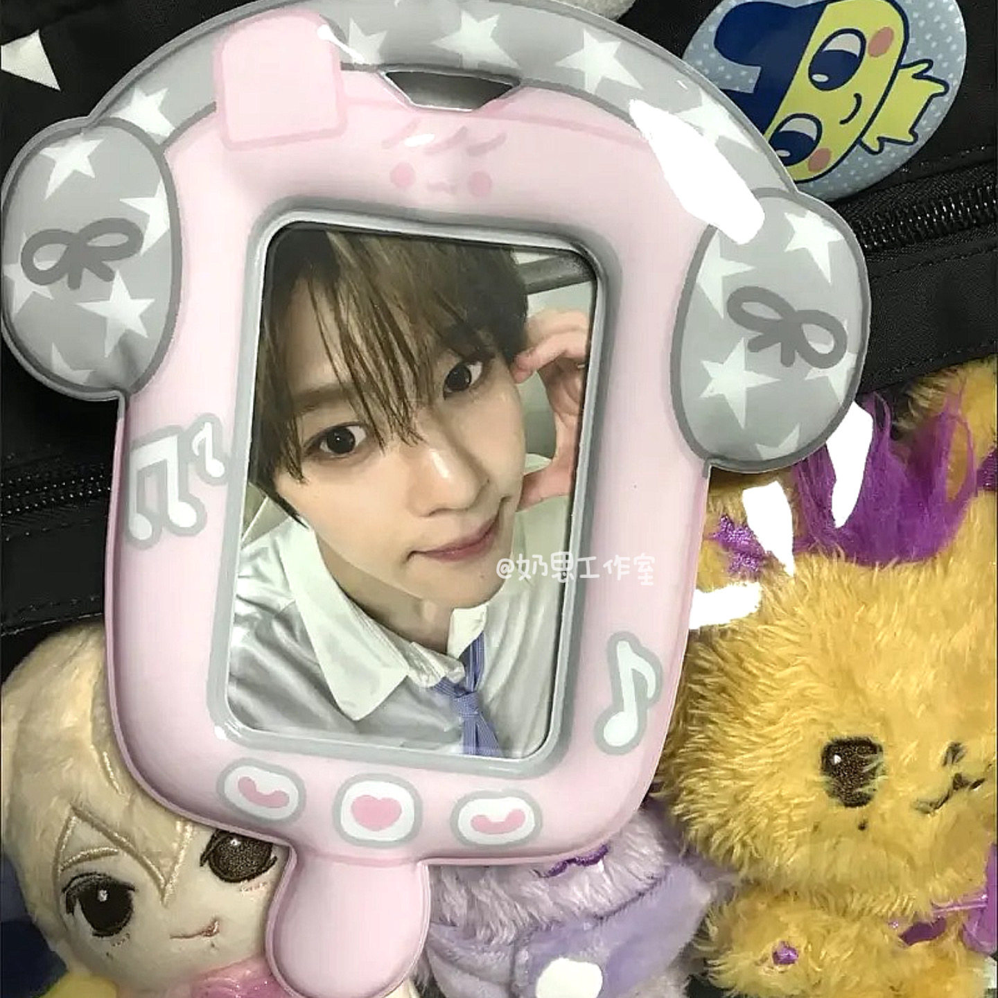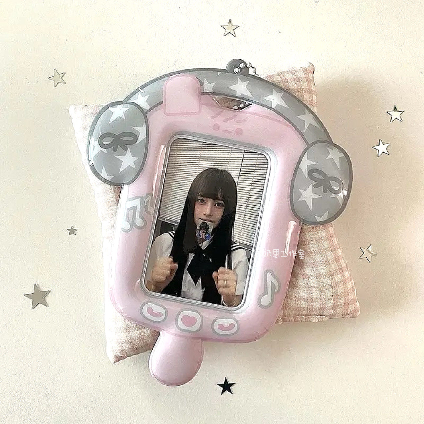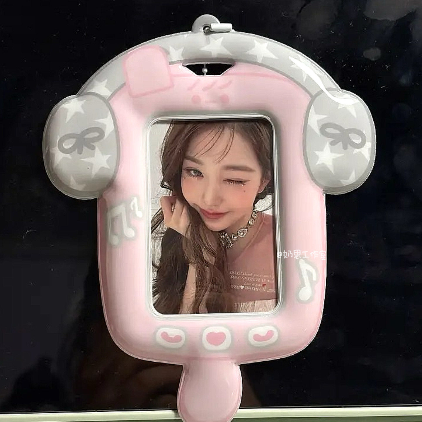 可爱耳机小猫横板pvc卡套3寸小卡收纳展示谷美ins风追星书包挂件
