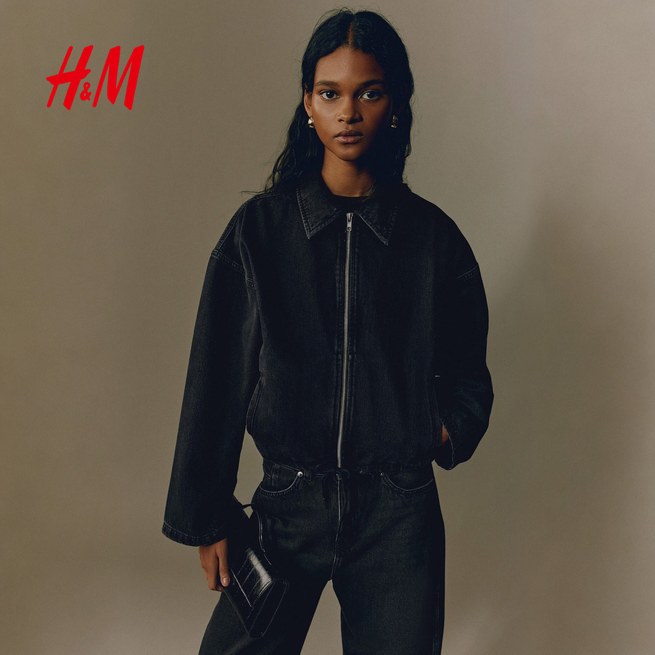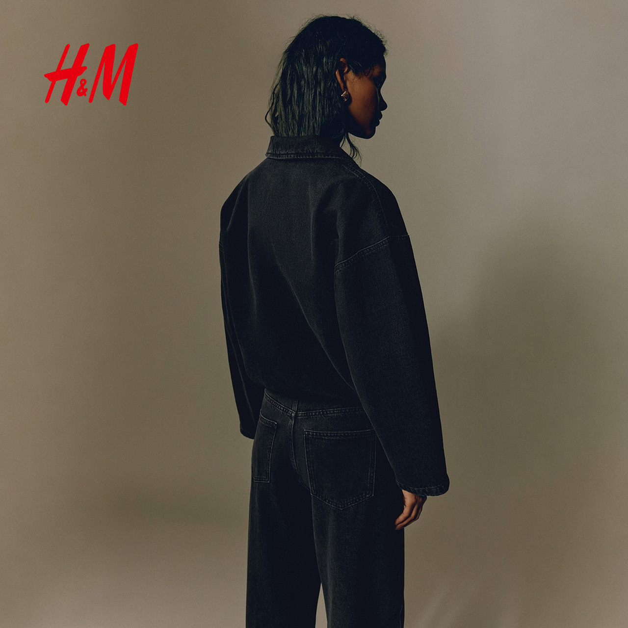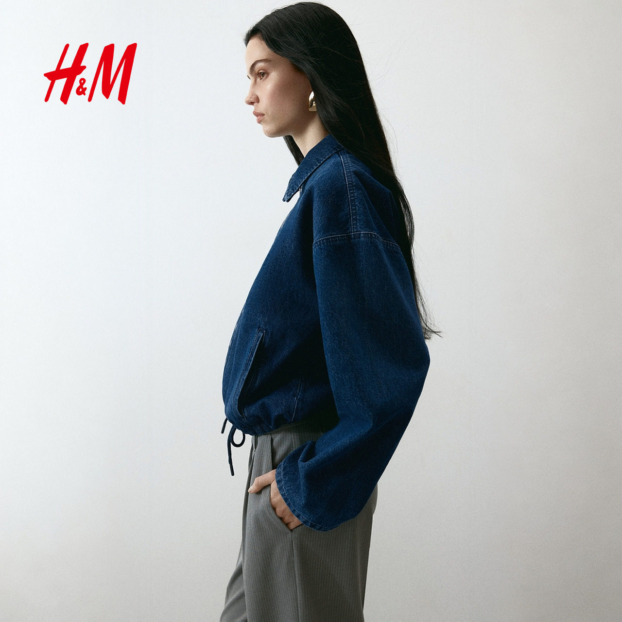 HM女装短外套2026春季新款休闲外出通勤翻领短款牛仔外套1315371