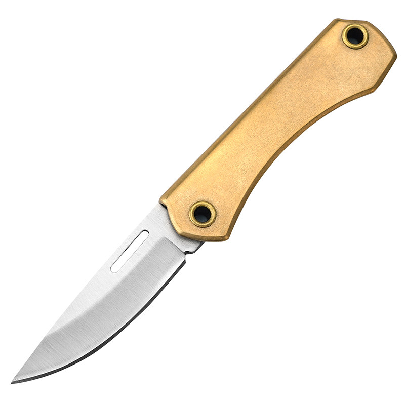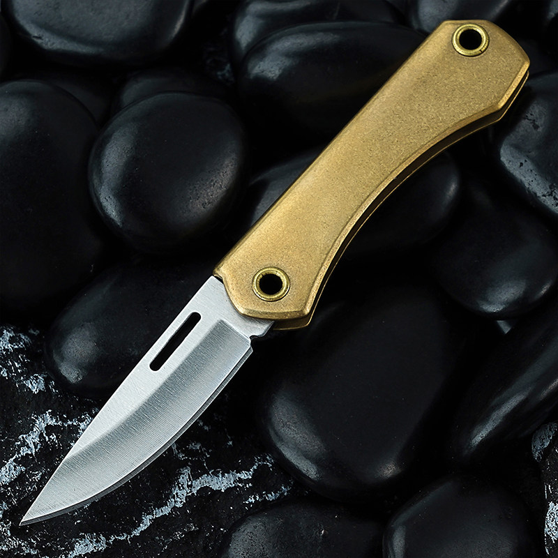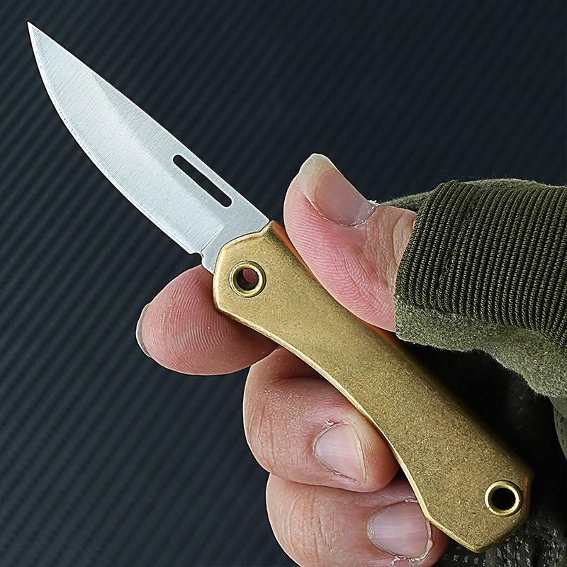 D2钢黄铜柄折叠刀快递开箱折叠小刀便携拆快递迷你折刀钥匙扣挂件