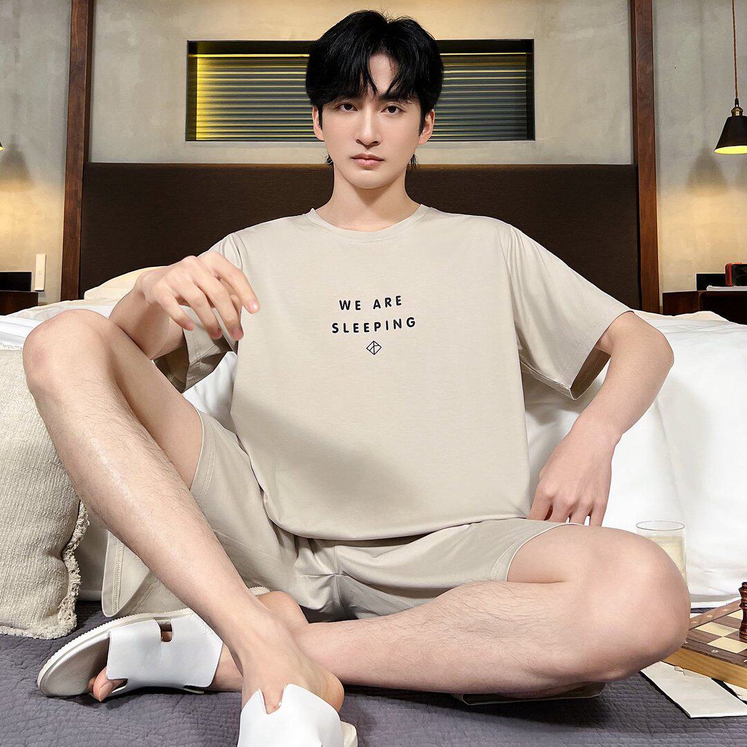 夏季睡衣男士短袖莫代尔薄款青少年男生冰丝夏天可外穿家居服套装