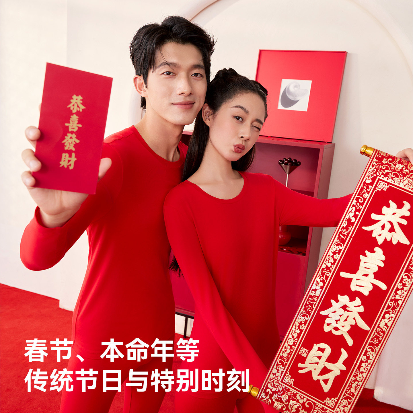 猫人喵红盒保暖内衣套装棉莫女士秋冬新婚秋衣秋裤本命年红品礼盒