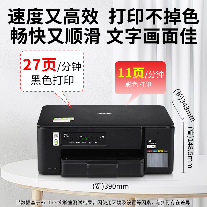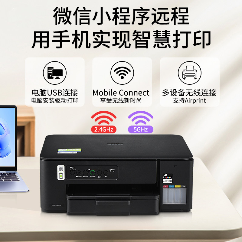 brother兄弟打印机DCP-T435W小墨方家用小型打印机小程序无线打印内置墨仓彩色一体机425 436升级款办公专用