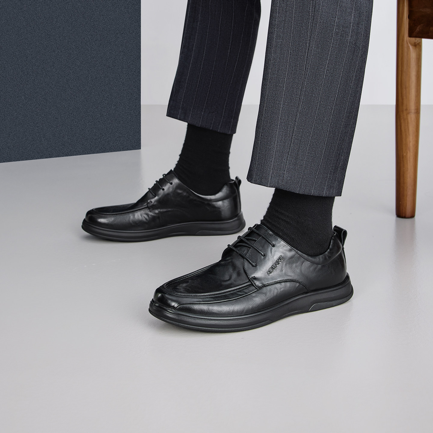 【小牛皮】青润chioryn袋鼠鞋男黑色真皮增高厚底休闲通勤风皮鞋