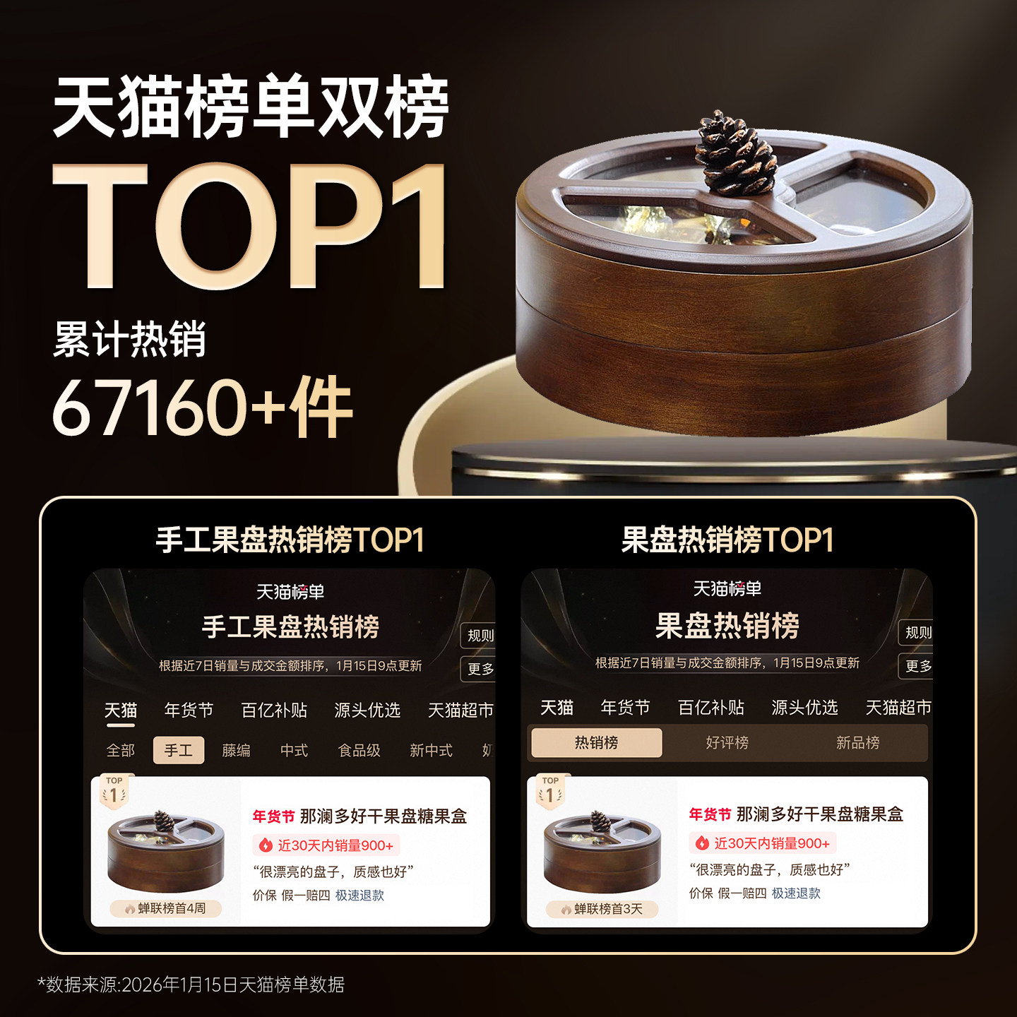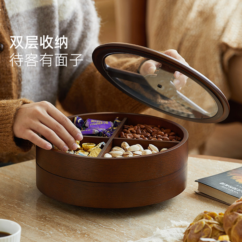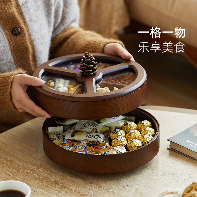 新年干果盘糖果盒家用木质客厅双层乔迁水果盘过年零食分格收纳盒