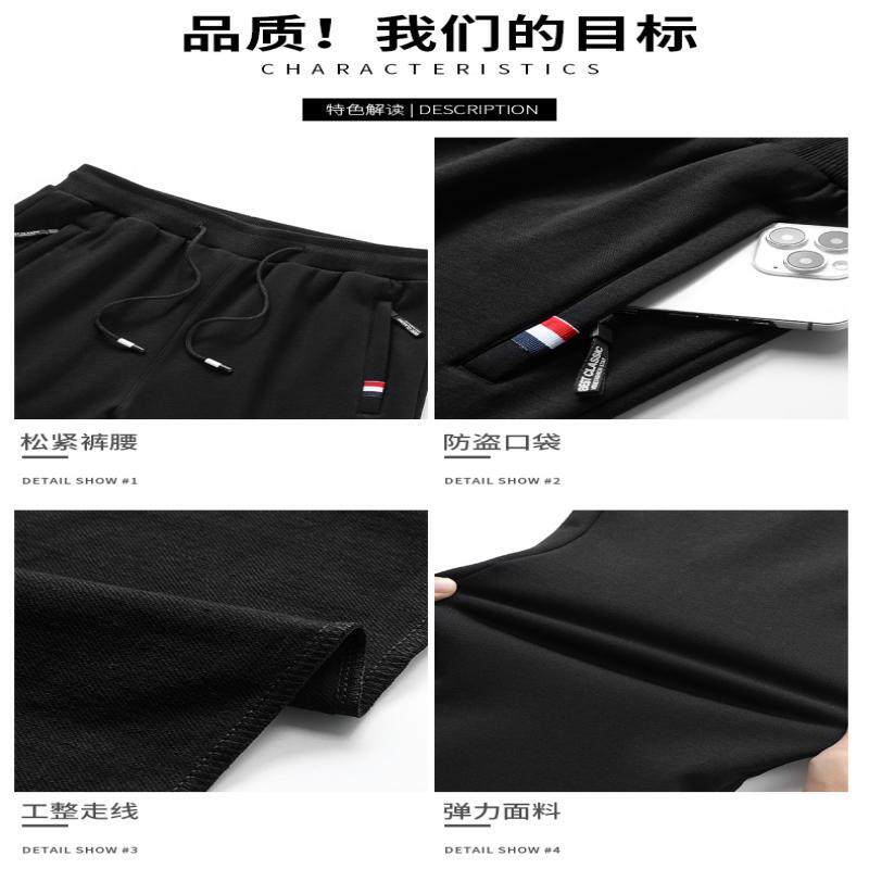 准者直筒宽松运动长裤秋冬新款男士休闲跑步篮球黑色针织加绒卫裤