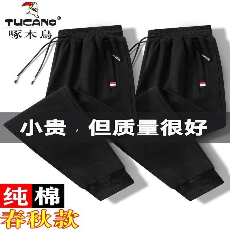 啄木鸟纯棉裤子男春秋冬款宽松拉链口袋卫裤加绒运动裤男长裤休闲