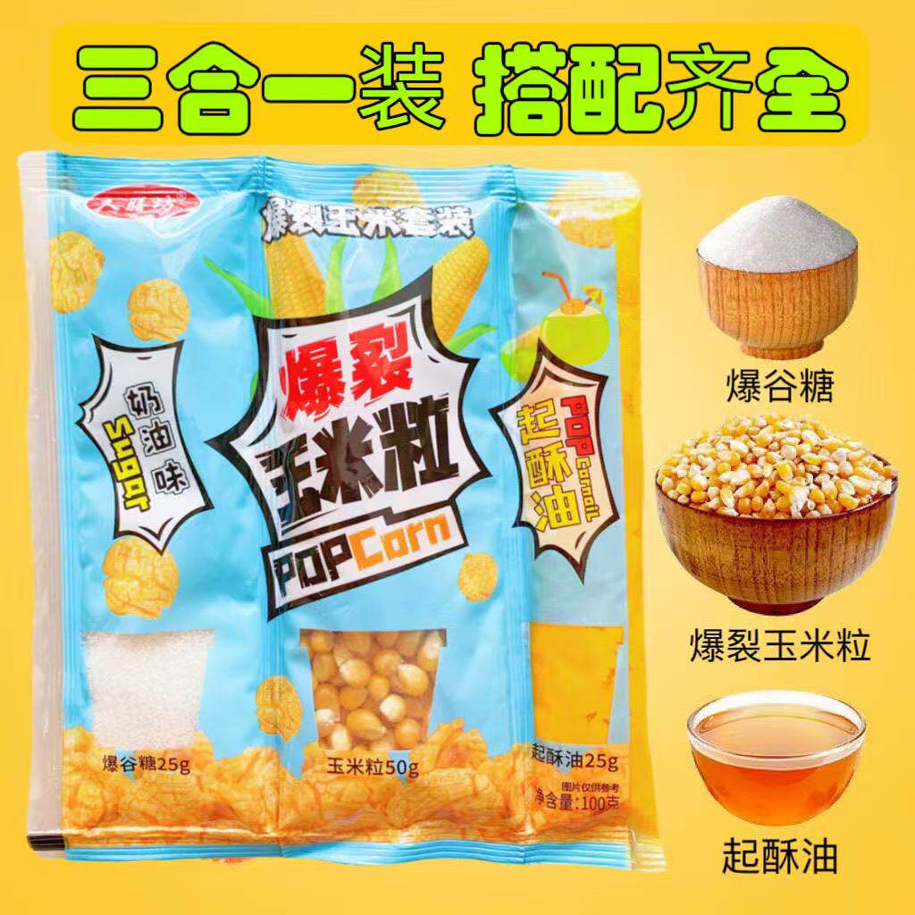 三合一爆米花原料组合爆裂玉米粒套餐专用油自制奶油焦糖零食家用