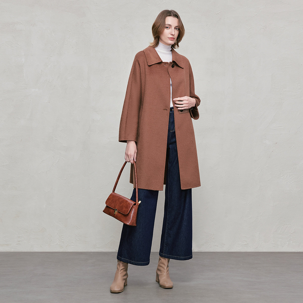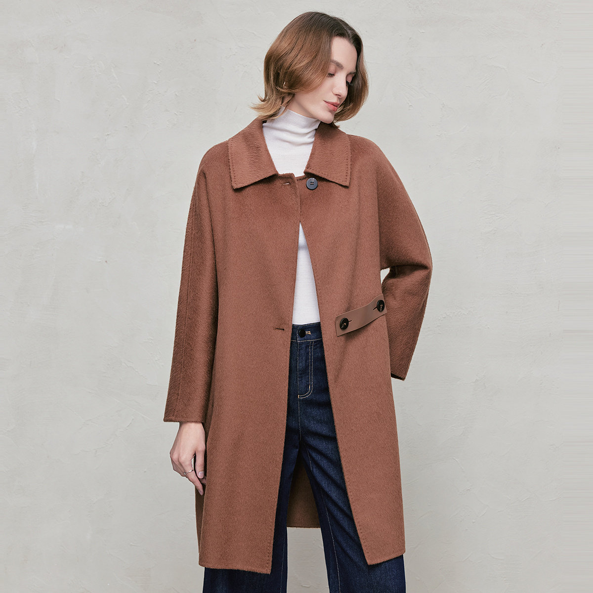 【羊驼毛】FINITY菲妮迪毛呢外套2026年春季新款双面呢长款大衣女
