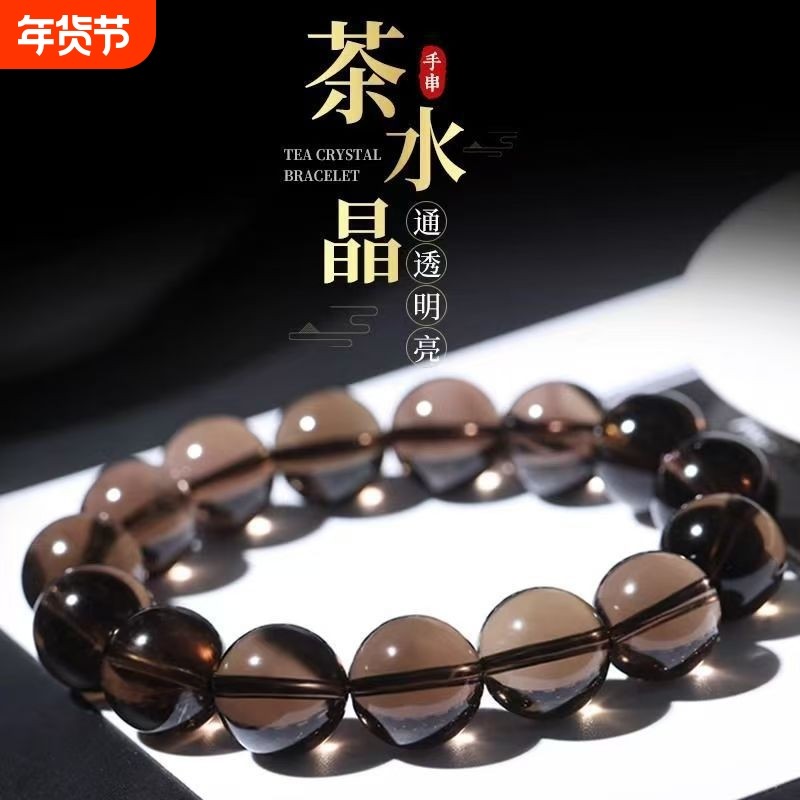 天然茶晶手链男女款单圈手串佛珠纯色茶水晶手串俏烟晶送礼物情侣