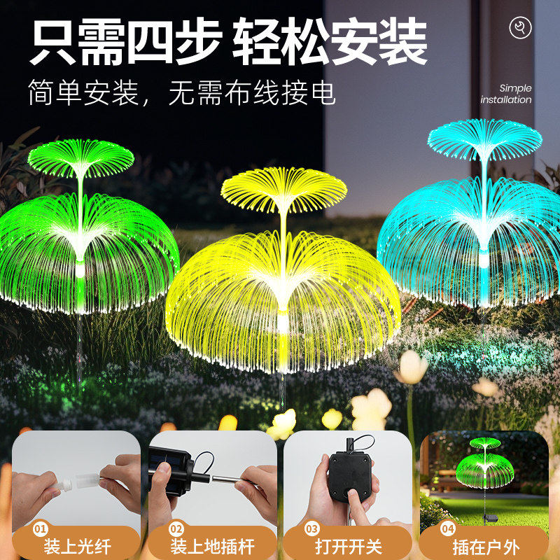 太阳能水母灯庭院灯户外烟花灯别墅草坪地插灯七彩景观灯花园小区