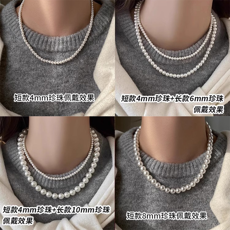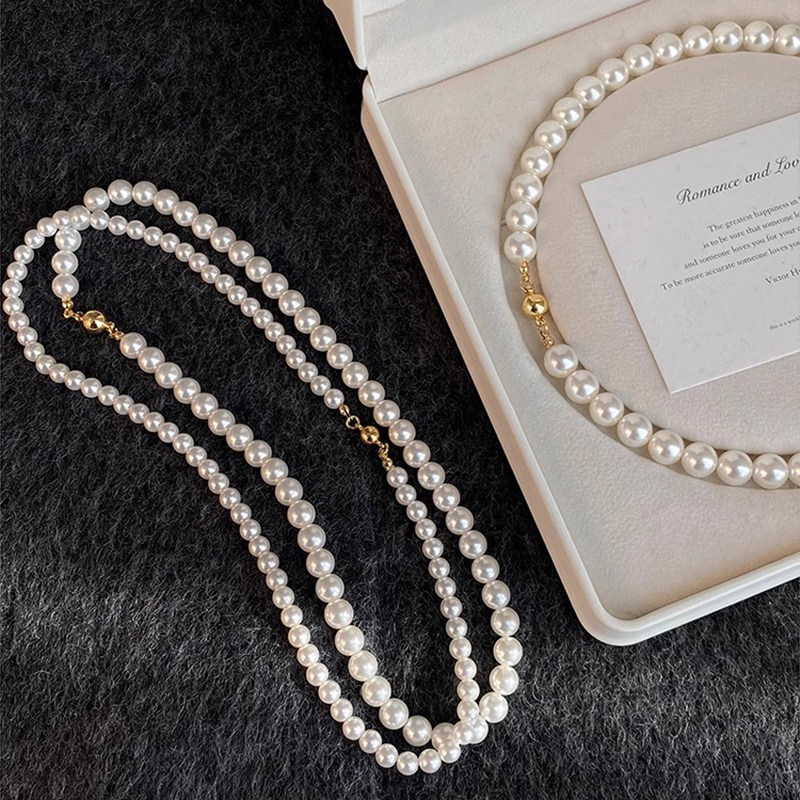 施家澳白磁吸扣正圆仿珍珠项链女2025新款叠戴毛衣链轻奢脖颈链