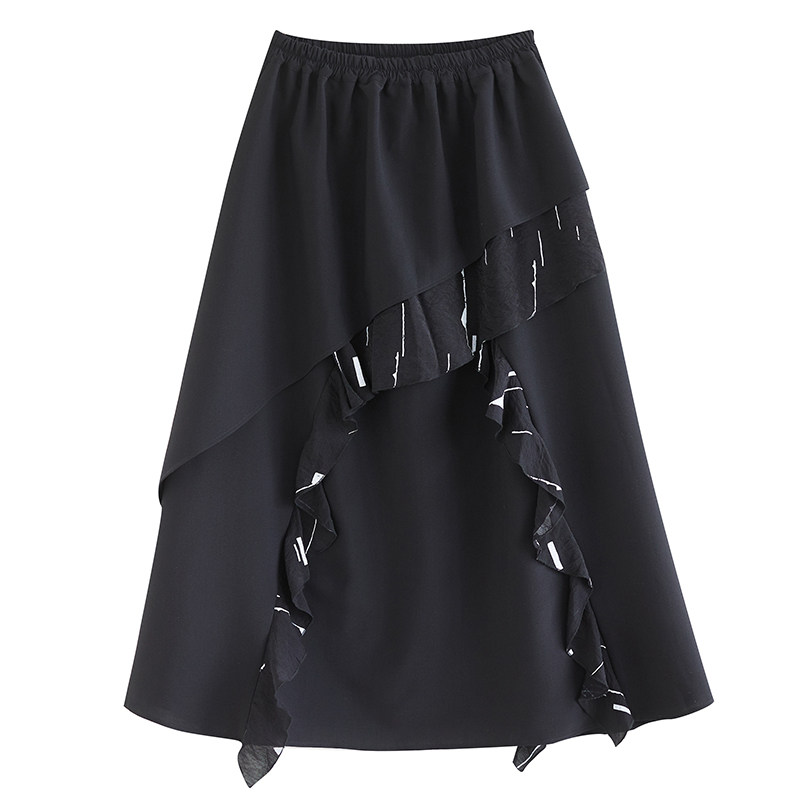 折扣春装新款暗黑风印花拼接半身裙时尚百搭不规则中长款A字裙