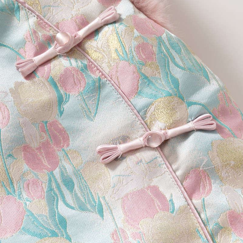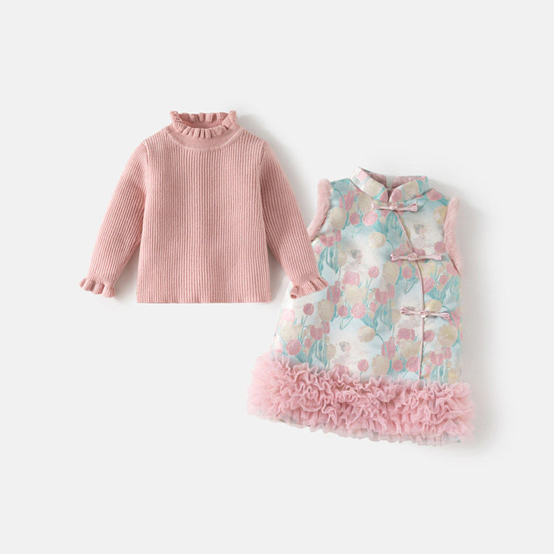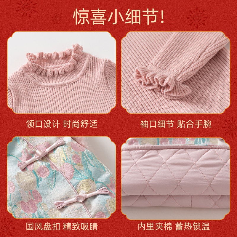 班喜迪女童汉服旗袍裙冬装宝宝周岁礼服裙子儿童国风唐装衣服冬季