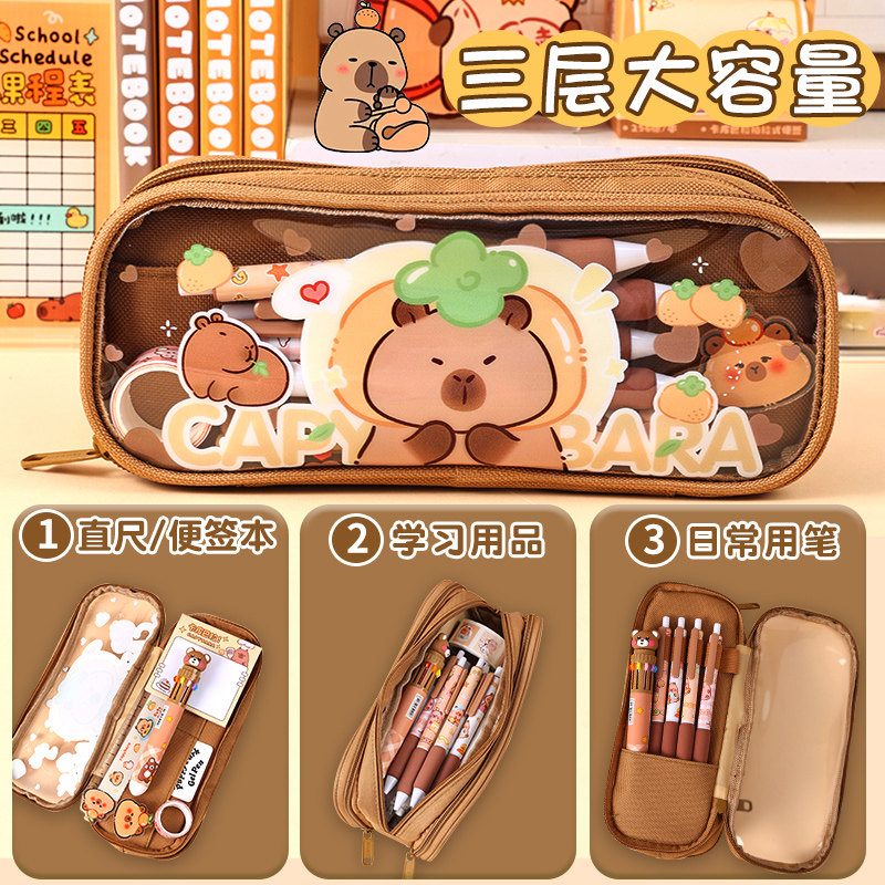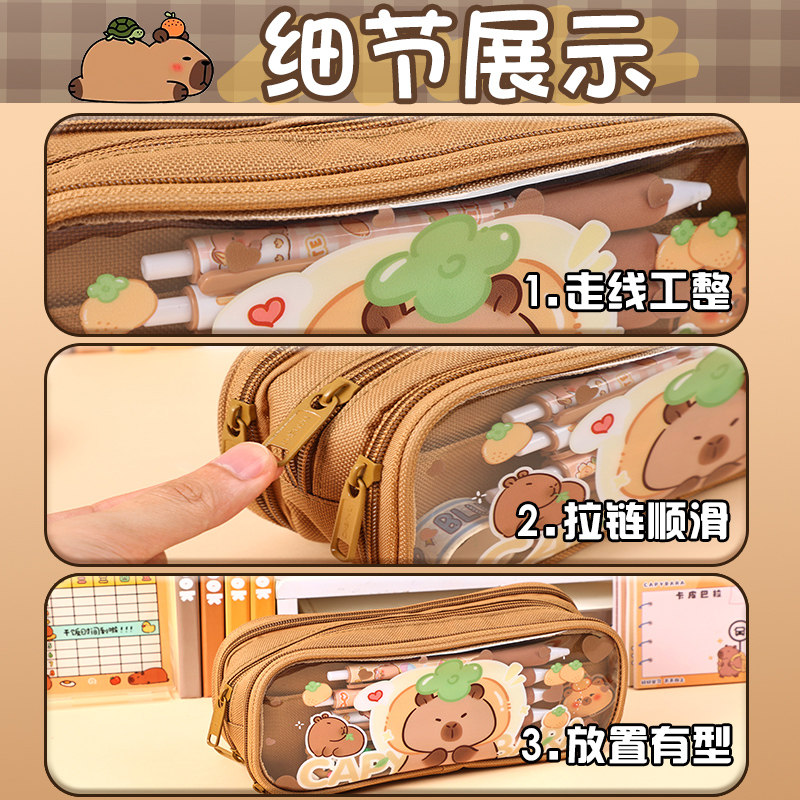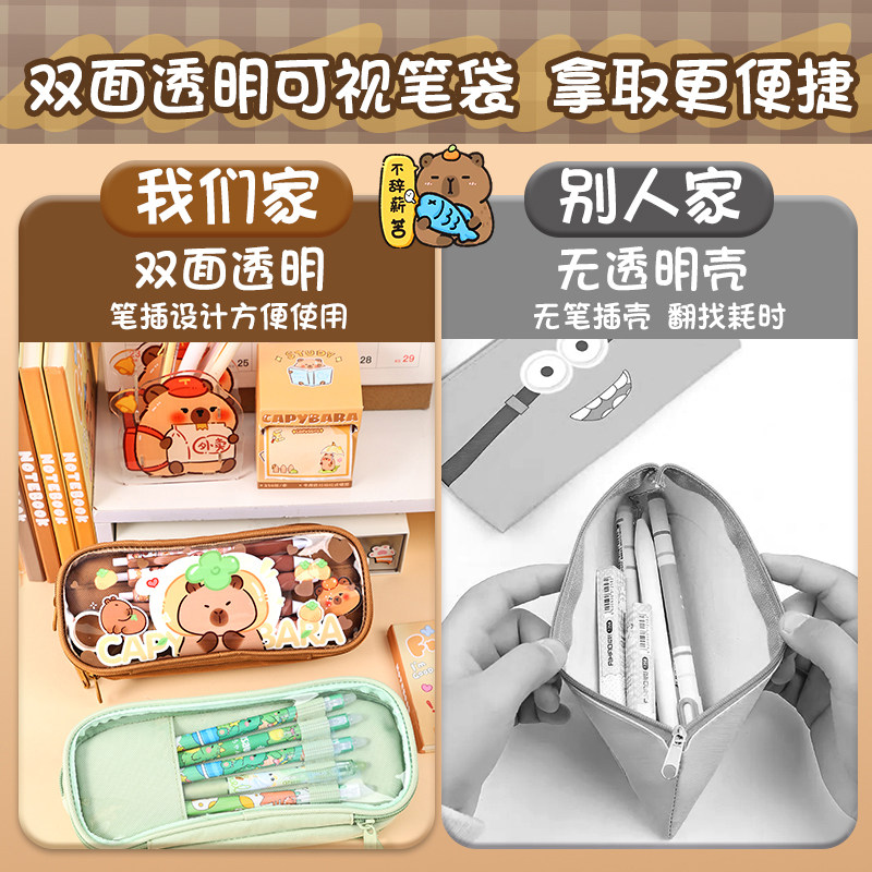 熊猫笔袋卡皮巴拉文具盒2026新款小学生专用大容量高颜值女孩款儿童多功能文具袋男孩透明超大铅笔盒套装