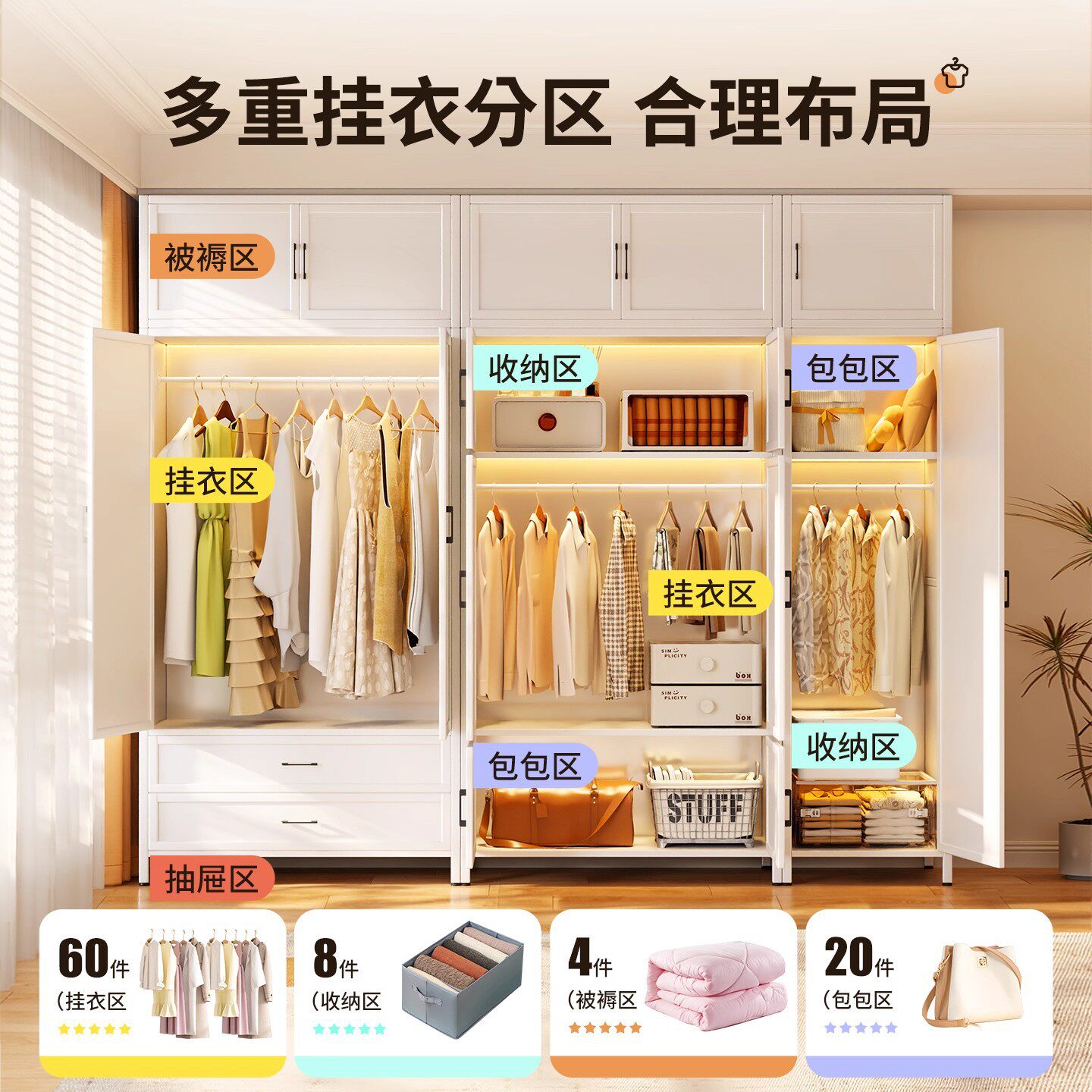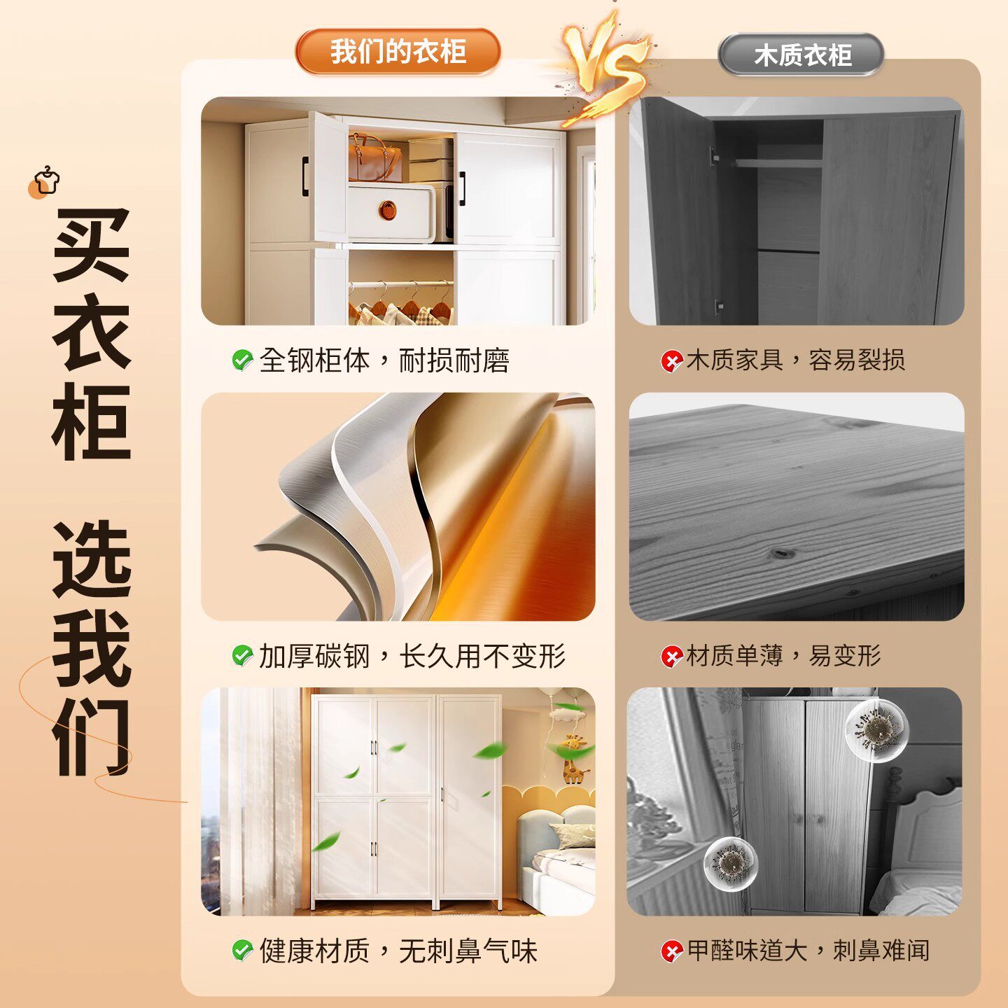 钢制衣柜家用卧室加厚铁艺简易收纳柜子出租房用儿童宝宝衣橱衣架