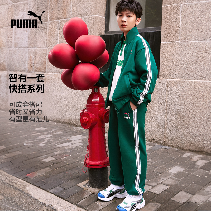 PUMA彪马童装新款儿童秋长袖外套休闲裤2件套T7运动条纹撞色套装